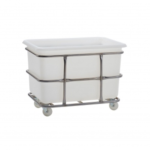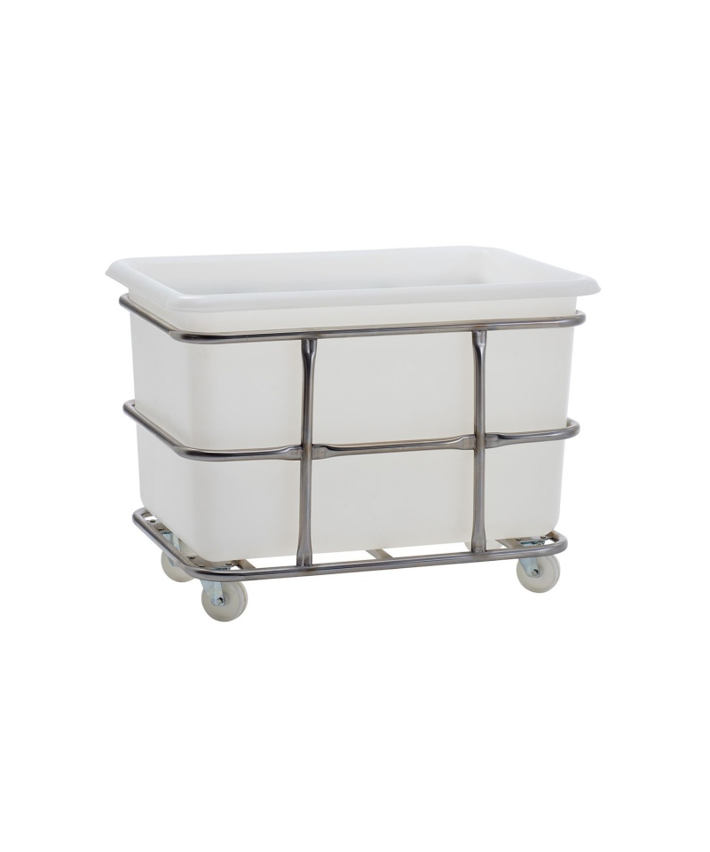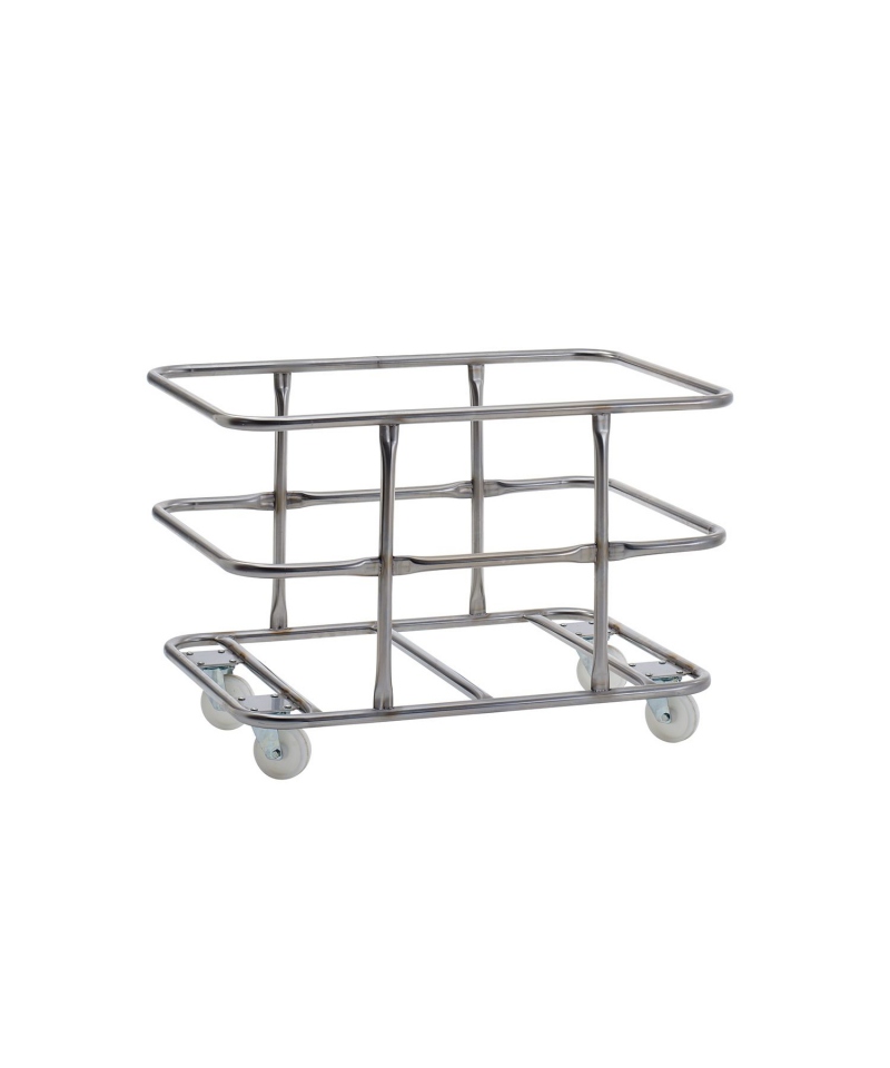 Doppelwagen aus Edelstahl für 6 Hygibox 45 L Behälter.