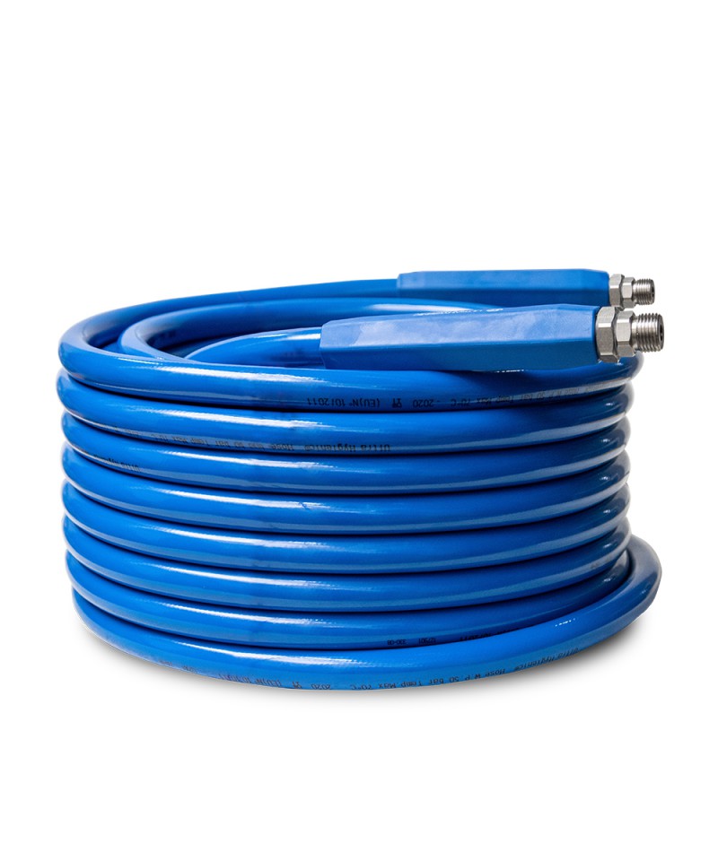 ULTRA HYGIENIC-Schlauch für den Lebensmittelbereich. Europäisch zugelassen. Ideal für zentrale Waschanlagen sowie für Leitungswasser. Widerstandsfähig bis 70° Grad und 50bar. Der Schlauch hat eine doppelte Textilverstärkung, die ihm ein sogenanntes "Memory" verleiht. Er besteht aus 6 speziellen Kunststoffschichten, die gegen alkalische und saure Umgebungen beständig sind. Die Außenfläche ist völlig glatt, nimmt keinen Schmutz auf und ist resistent gegen tierische und pflanzliche Fette.