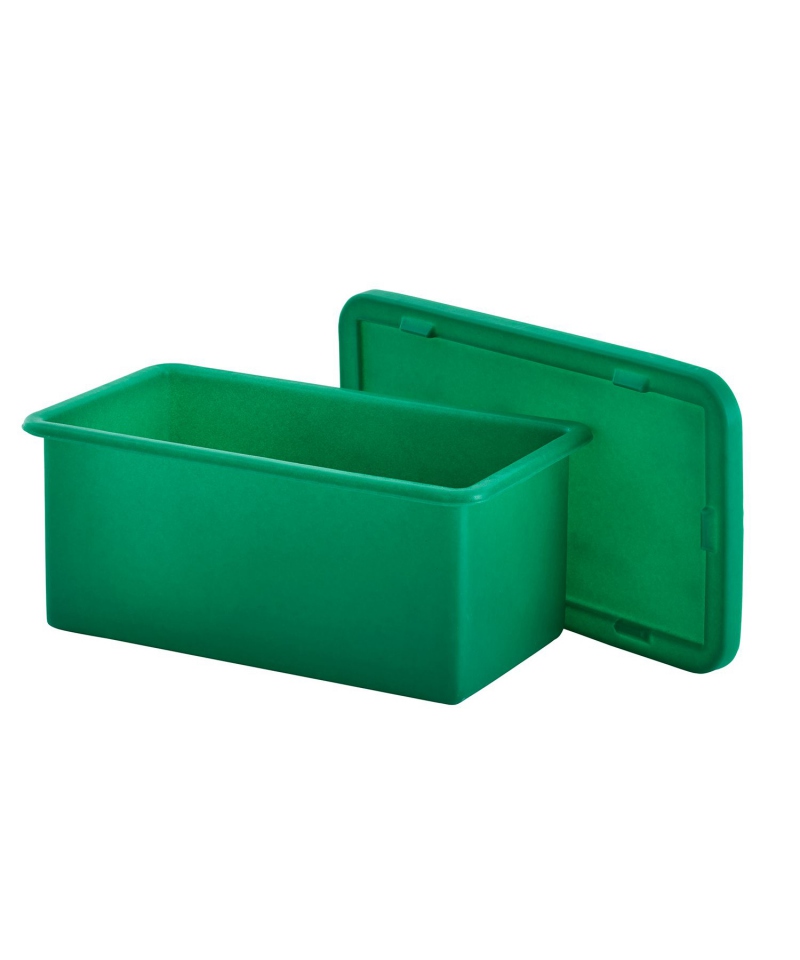 Die robuste Box und der Deckel werden als komplettes Set geliefert. Der Deckel wird aus demselben Material und in demselben Verfahren hergestellt wie die Box selbst, wodurch ein hochwertiges Produkt gewährleistet wird. Der Deckel ermöglicht es außerdem, die Boxen einfach übereinander zu stapeln und so den Platzbedarf für Lagerung und Aufbewahrung zu reduzieren.