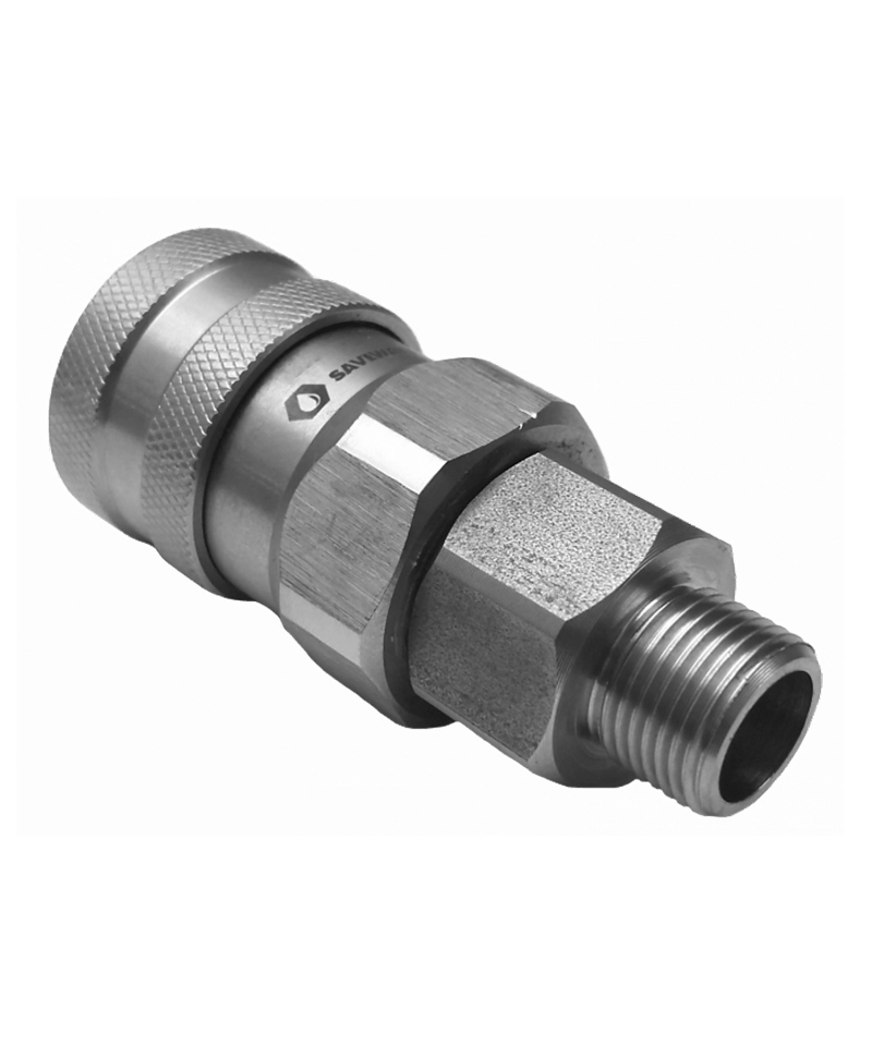 Kupplungselement zur Verwendung in zentralen Waschanlagen, in der Lebensmittel- und Fleischindustrie. Hergestellt aus rostfreiem Stahl in der Größe 3/8 Zoll. Diese hochwertige Schnellkupplung ist aus haltbarem Material für Korrosionsbeständigkeit und lang anhaltende Leistung. Dank des Außengewindes lässt sie sich einfach und schnell mit anderen Komponenten im System verbinden.