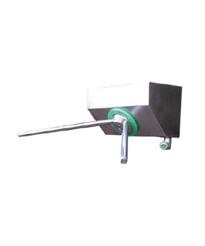 Eingangstor, wandmontiertes Drehkreuz, mit Fotozelle betrieben.