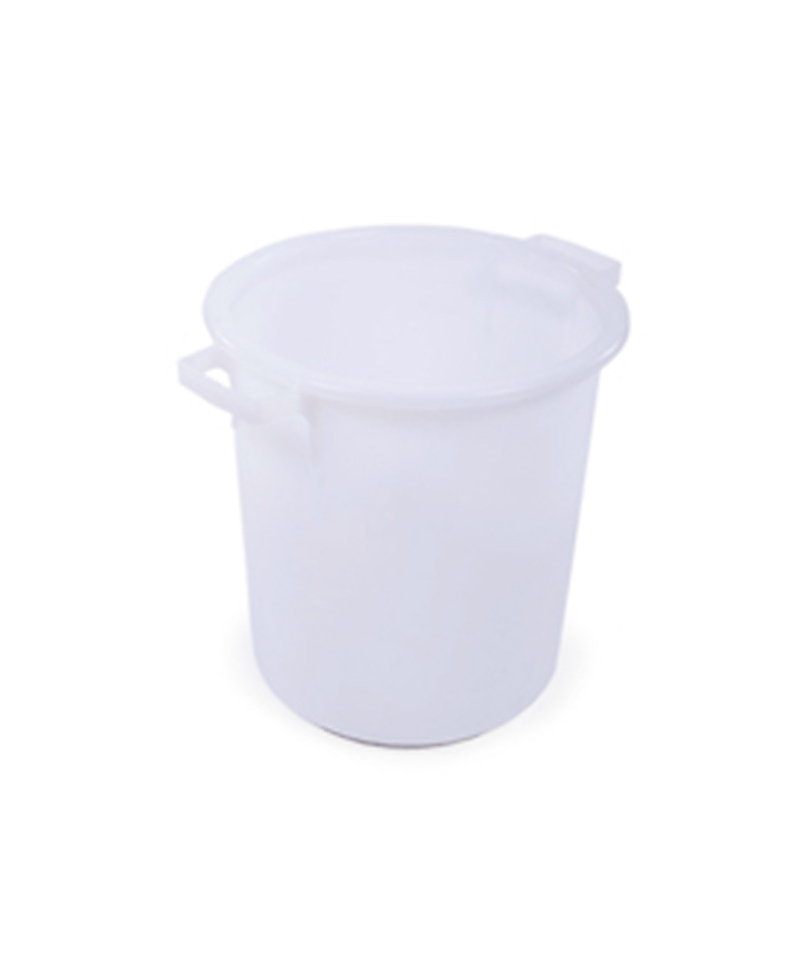 Der runde geformte Behälter hat ein Fassungsvermögen von 40 Litern und Griffe. Er ist für den Kontakt mit Lebensmitteln geeignet. Der Kunststoffbehälter (Polyethylen) ist haltbar und kann bei Nichtgebrauch einfach ineinander gelagert werden. Im Lieferumfang ist ein Satz runder Kunststoffgriffe für eine einfache Handhabung enthalten. Der leicht zu handhabende runde Behälter ist ein Favorit in der Lebensmittelindustrie, insbesondere in der Lebensmittelproduktion und -verarbeitung. Er wird für die Handhabung von trockenen Zutaten und Halbfertigprodukten verwendet.