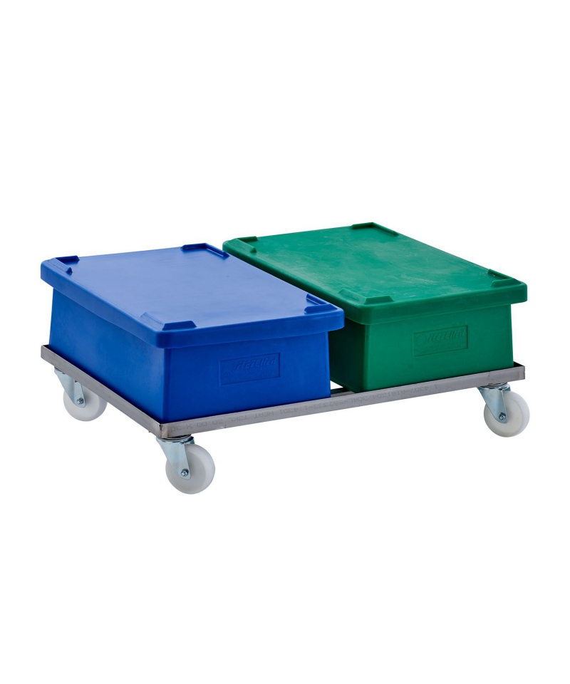 Der Doppel-Edelstahlwagen ist für zwei Stapel Hygibox-Behälter ausgelegt und bietet eine Alternative zu Kunststoffwagen, die dem Benutzer eine höhere Festigkeit und Haltbarkeit bieten. Seine durchdachte Konstruktion bietet eine stabile Plattform für zwei Hygiboxen und dient als Transportlösung, die einer starken industriellen Beanspruchung standhält. Bitte beachten Sie, dass dieser Wagen nicht mit der HYGIBOX40 kompatibel ist.