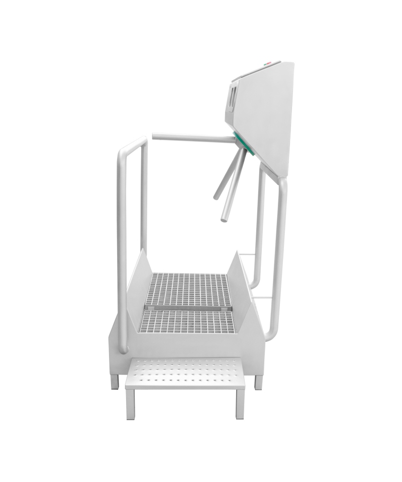- Ausgestattet mit einem Drehkreuz, das den Durchgang erst dann freigibt, wenn die erforderliche Maßnahme durchgeführt wurde (Sonderausstattung: das Drehkreuz kann in beide Richtungen drehen)