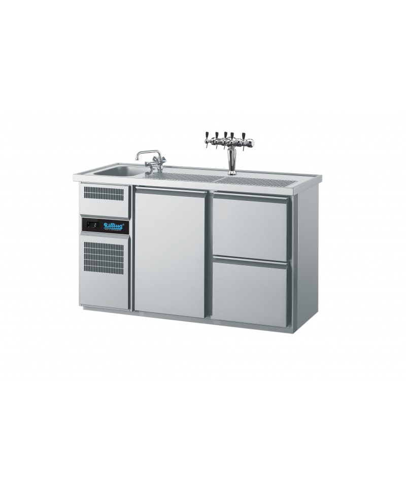 Gekühlter Barhocker, 1 Tür, 2 Schubladen, mit eigenem Kühlaggregat, 1550x700x980, AGT M721R 81-1/2