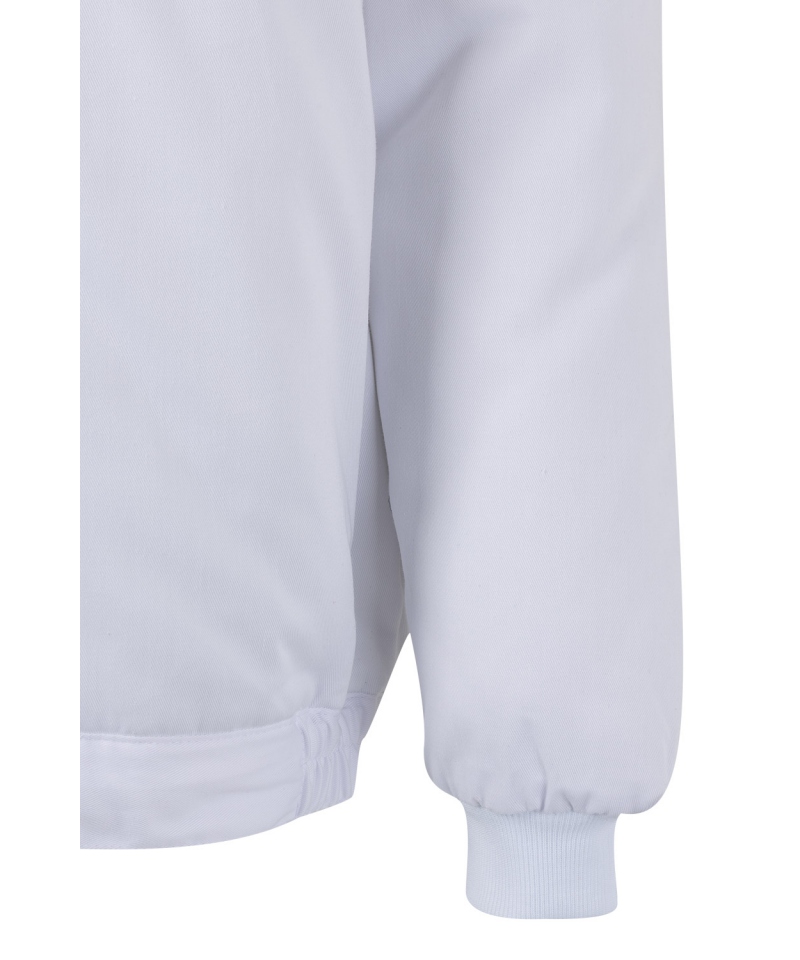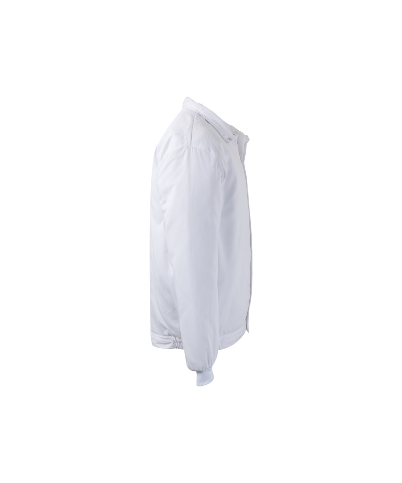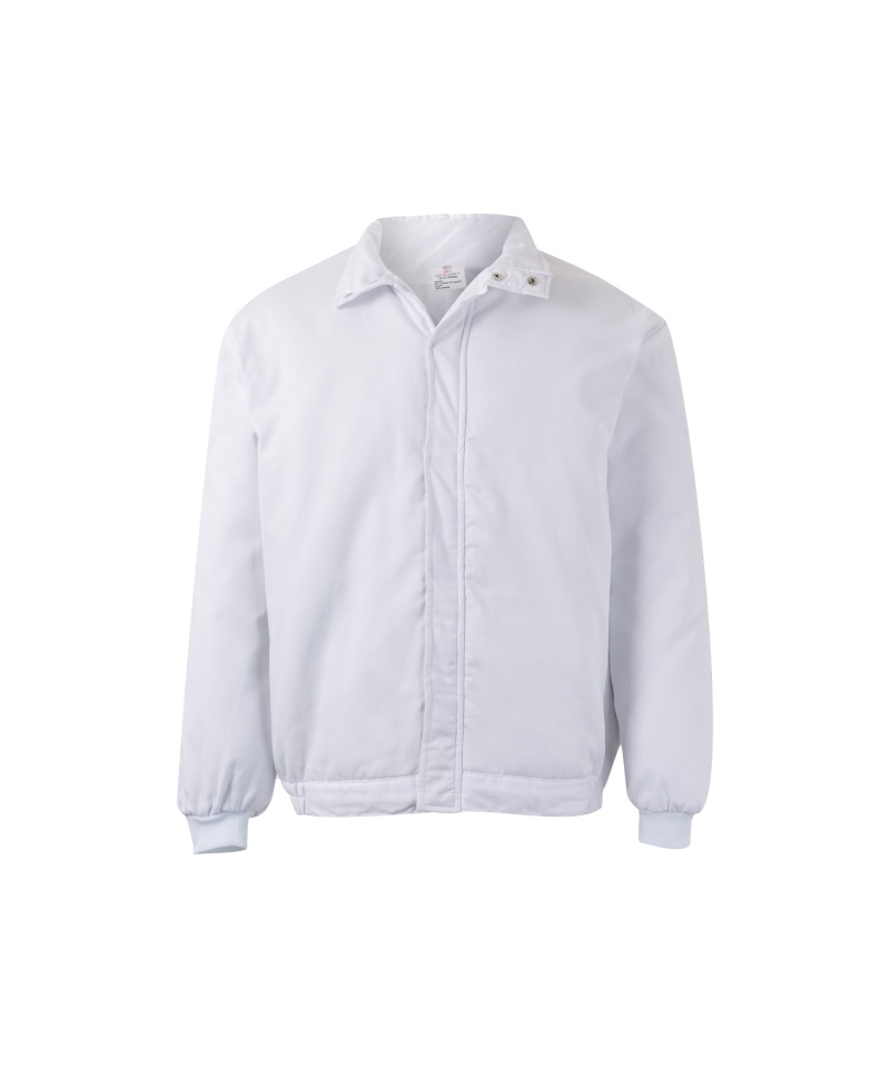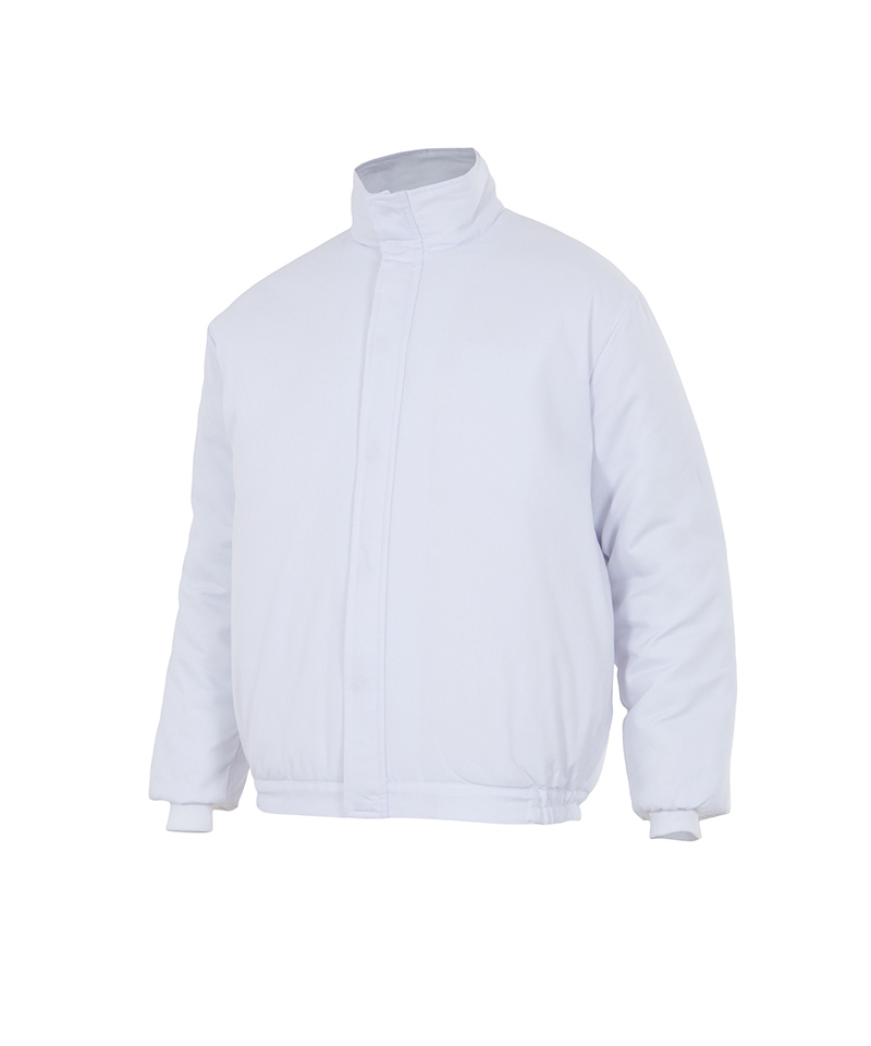 Diese isolierte Jacke, ganz in Weiß, wurde speziell für die Arbeit in Kühlhäusern entwickelt und ist für die Lebensmittelindustrie, Fleisch- und Fischfabriken und Lebensmittellager bestimmt.