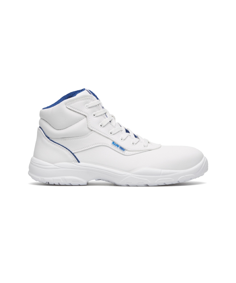 Arbeitsschutzschuhe der italienischen Marke SAFEWAY für Lebensmittel-, Fleisch- und Fischverarbeitungsbetriebe. Strapazierfähiges und robustes Schuhwerk in Weiß. Ausgestattet mit einer rutschfesten Sohle und einer Einlegesohle zum Schutz der Zehen. Die Sohlen sind zusätzlich abriebfest.