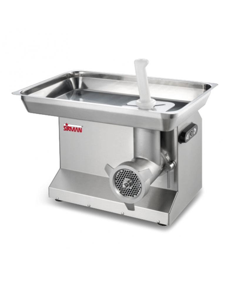 Der Sirman-Fleischwolf, Modell TC 32 Colorado, ist aus rostfreiem Stahl AISI 304 gefertigt und zeichnet sich durch Langlebigkeit und Hygiene aus. Ausgestattet mit leistungsstarken, isolierten Motoren mit gekühlten Ventilatoren und Schutzart IP 55, die einen Dauerbetrieb ermöglichen. Der Schneckengetriebemotor im Ölbad garantiert eine lange Lebensdauer und ist mit einer doppelten Dichtung ausgestattet, die einen störungsfreien Betrieb gewährleistet. Das Gerät ist dank der werkzeuglosen Kopfverriegelung bequem zu bedienen. Der Schleifkopf aus rostfreiem Stahl ist für eine leistungsstarke Produktion ausgelegt und kann zur einfachen Reinigung komplett abgenommen werden. Die Steuerung wird mit 24 V betrieben, die Schutzart ist IP 54.