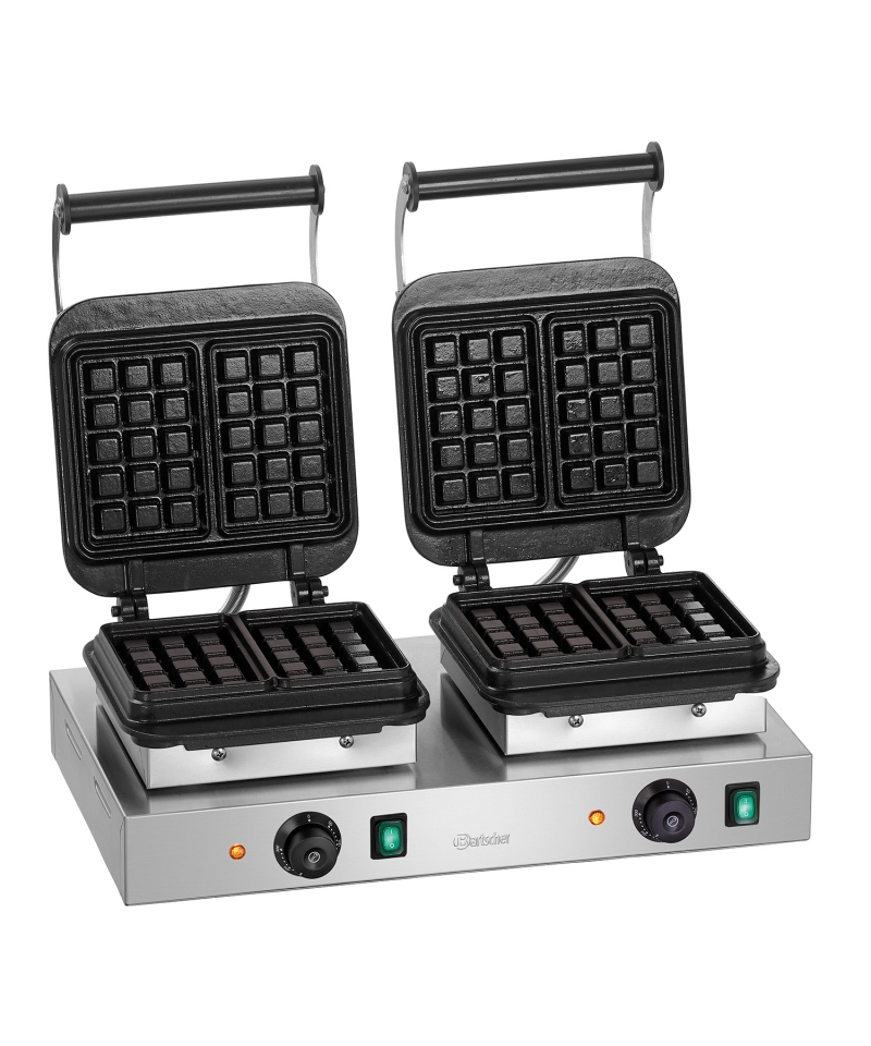 Das HENDI Waffeleisen mit großem Gitter ist das ideale Gerät für alle, die belgische Waffeln auf professionellem Niveau zubereiten möchten. Mit soliden, emaillierten Gusseisenplatten ausgestattet, sorgt dieses Waffeleisen für eine gleichmäßige Hitzeverteilung – für perfekte Ergebnisse: knusprig außen, weich und fluffig innen. Das große 3x5-Gittermuster ermöglicht die gleichzeitige Zubereitung von zwei klassischen rechteckigen Waffeln – ideal für schnelles Arbeiten und eine ansprechende Präsentation.