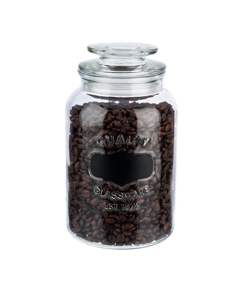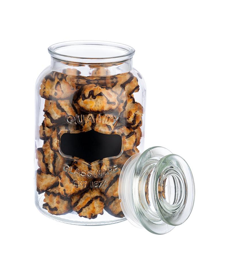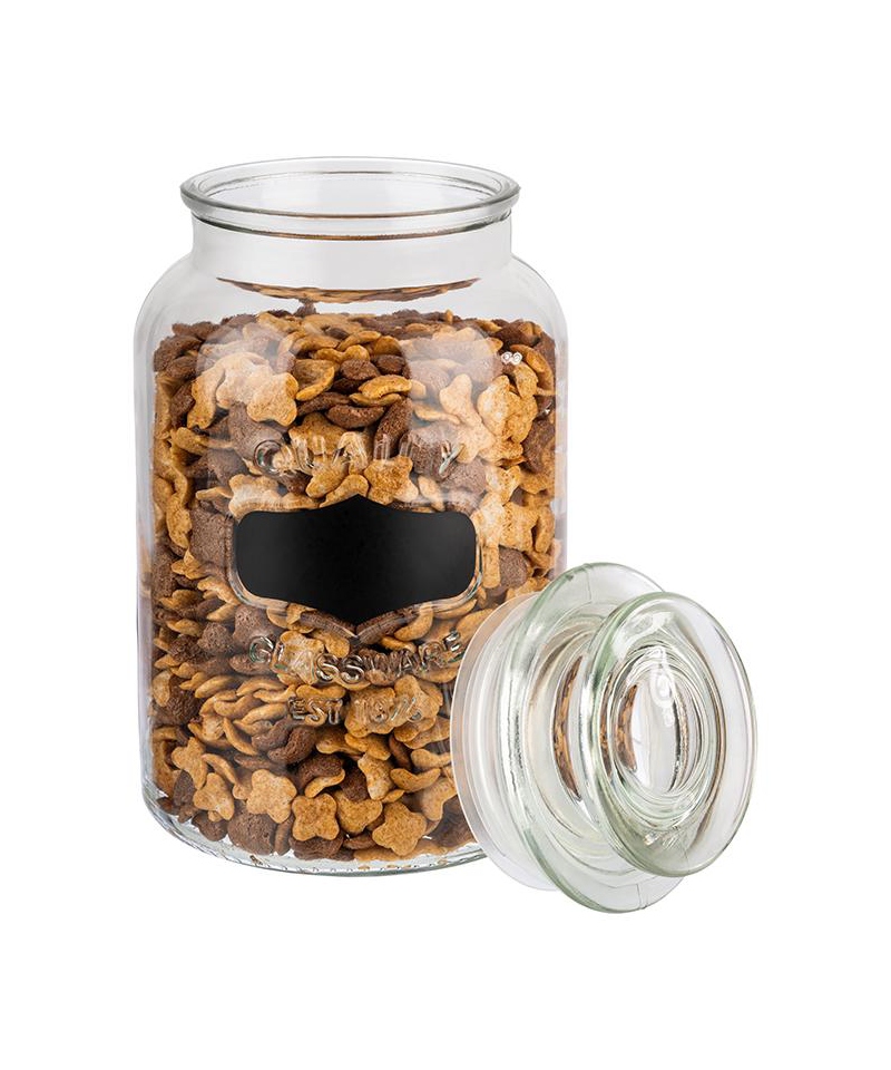 Der Glasbehälter ist umweltfreundlicher als ähnliche Behälter aus Kunststoff oder Metall und kann viele Jahre lang verwendet werden. Er hat ein schwarzes Etikett, auf dem Sie den Inhalt des Behälters notieren können. Er hat ein großes Fassungsvermögen von 1,5 Litern und die Dichtung ist aus Polyethylen gefertigt.