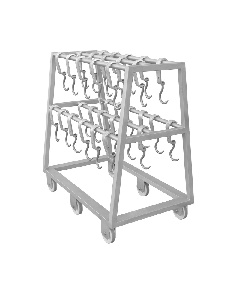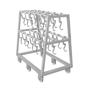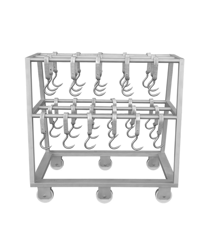 Bemerkenswert ist, dass der Wagen ohne Haken verkauft wird, so dass er an die individuellen Bedürfnisse und Spezifikationen des jeweiligen Fleischbetriebs angepasst werden kann.