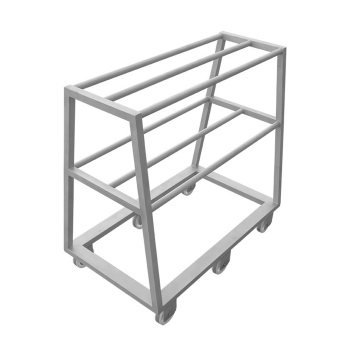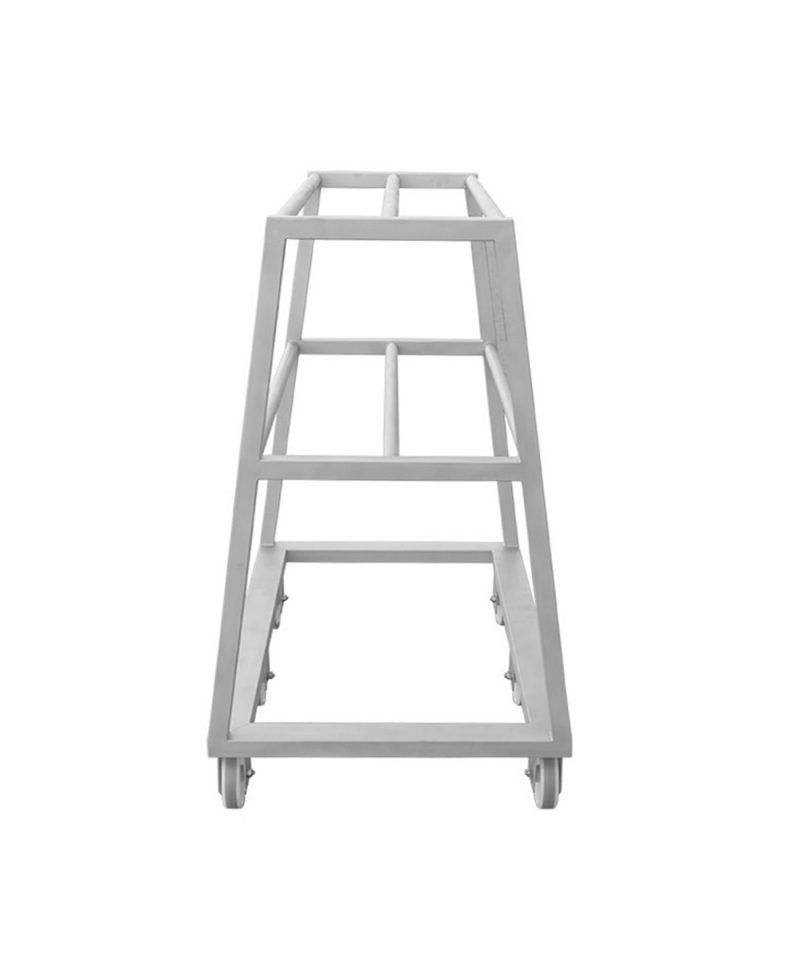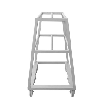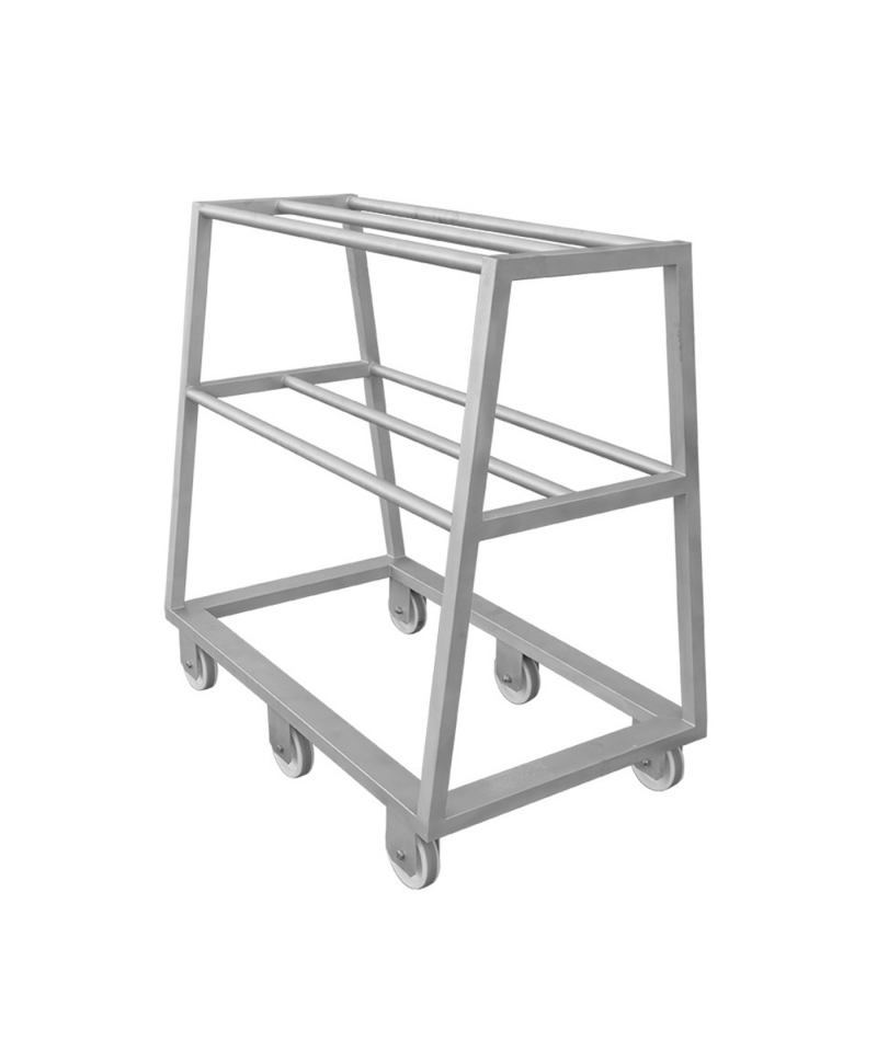 Mehrstufiges Design: Der Wagen verfügt über zwei Plattformen mit drei Stangen auf jeder Ebene, die insgesamt bis zu 200 EURO-Haken aufnehmen können. Diese Anordnung garantiert die Organisation und den effizienten Transport der Haken.