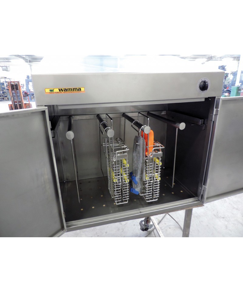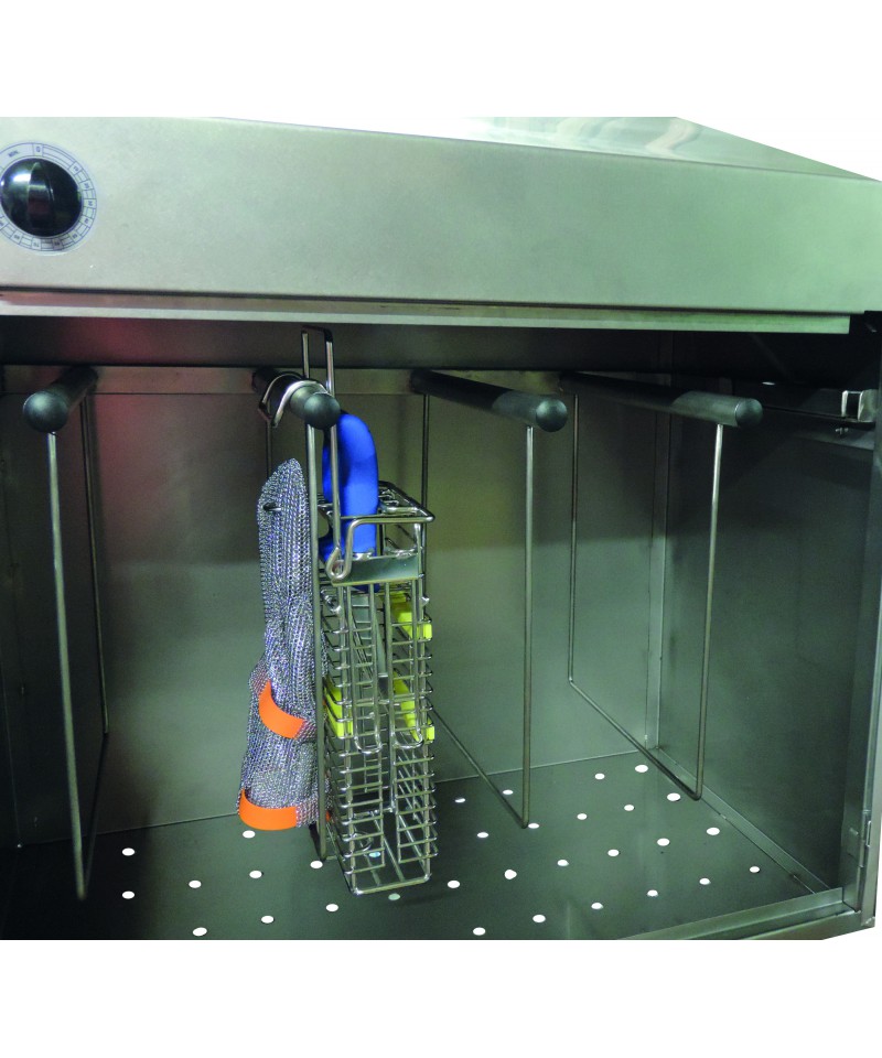 Sterilisator mit Stäben zum Aufhängen von 16 kleinen oder 8 großen Körben mit Messern, Gabeln, Messerschärfern, Metallhandschuhen. Möglichkeit zur Sterilisation anderer zum Aufhängen geeigneter Werkzeuge.