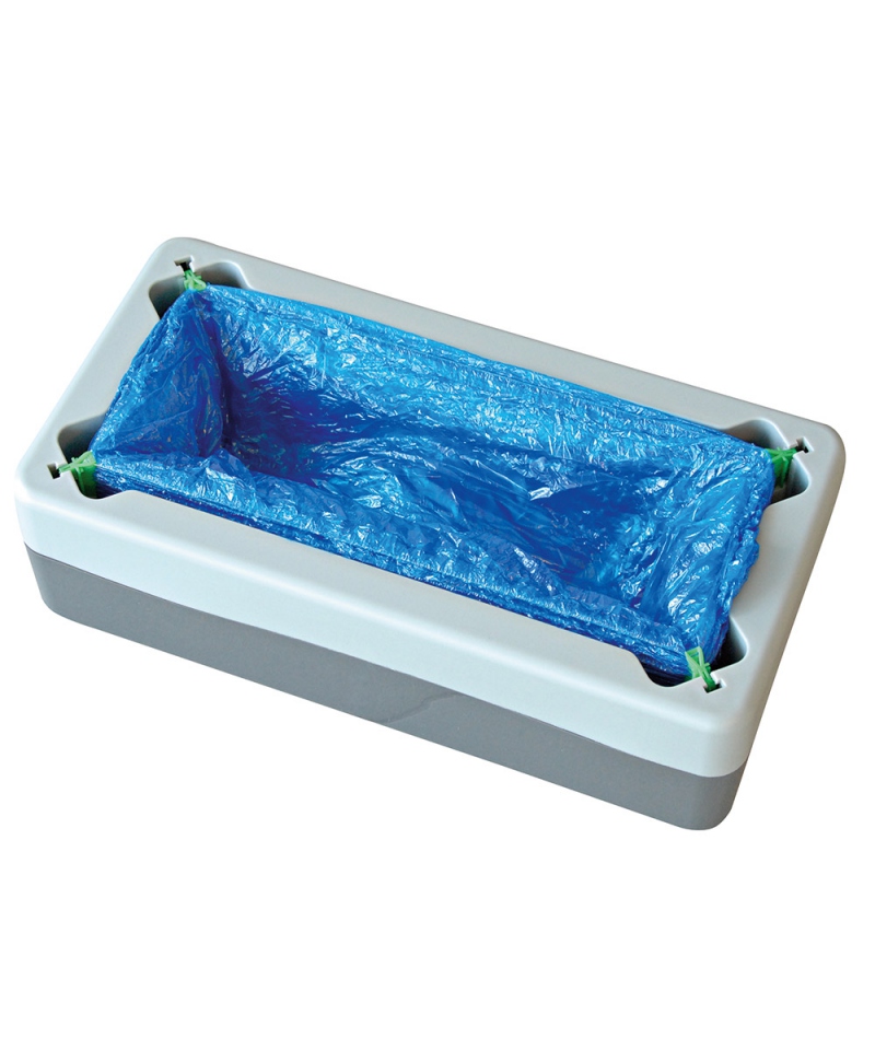 Einfach zu bedienender, intuitiver und schneller Schuhputzmittelspender. Kein Strom erforderlich, er funktioniert mechanisch. Einfach den Fuß mit dem Schuh einführen, nach unten drücken und der Schuhüberzug wird automatisch über den Schuh gezogen.