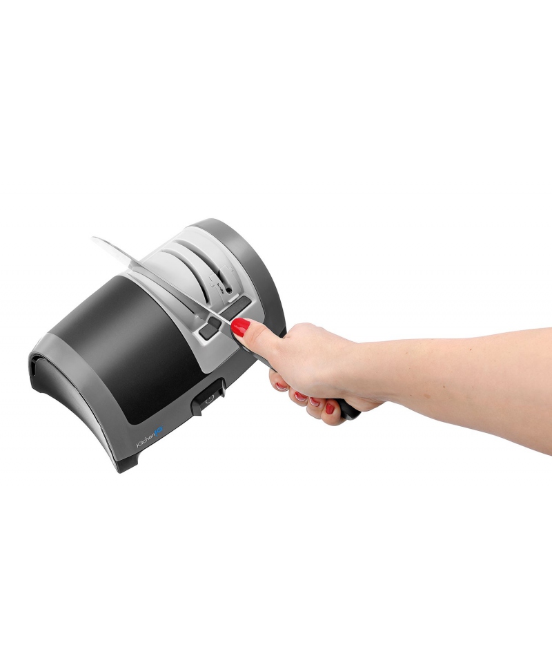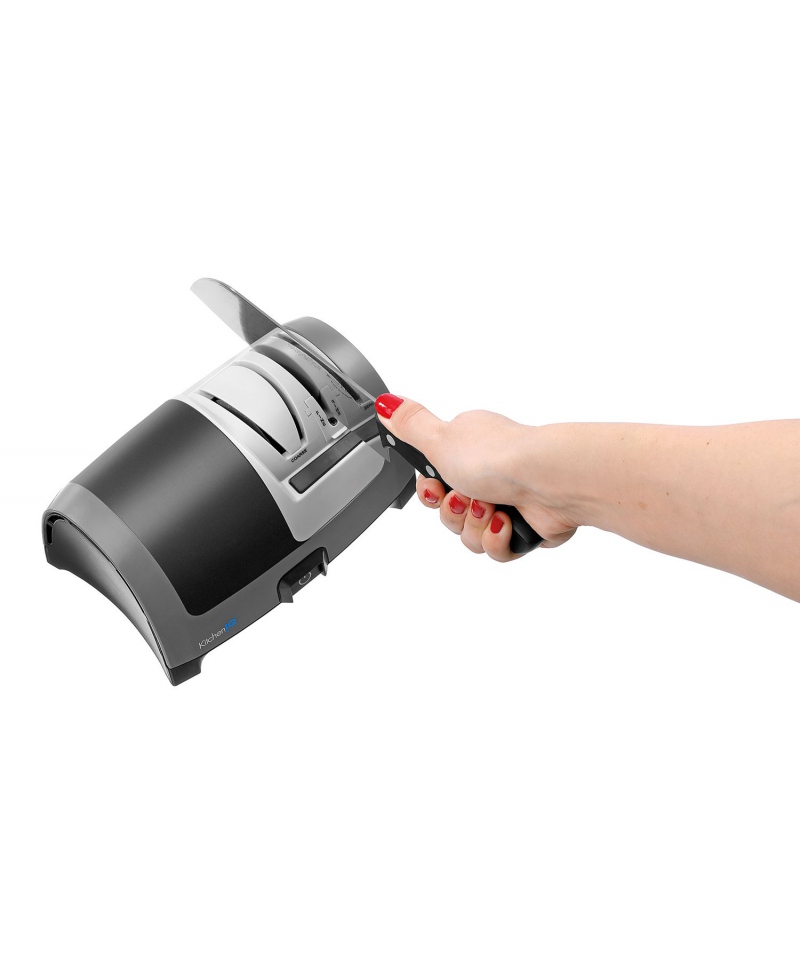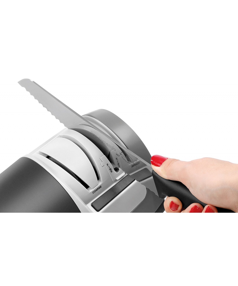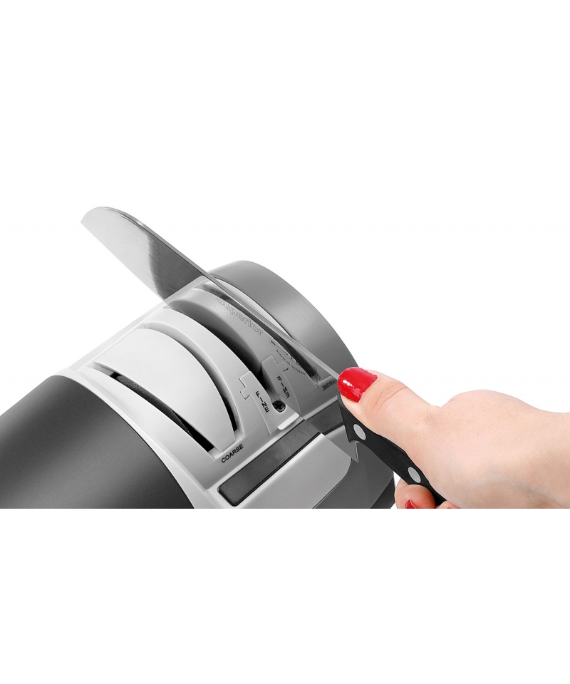 | Schärfstufen: | Glatte Klingen: 2 Stufen (Schleifen, Feinpolieren) Wellenschliff: 1 Stufe |