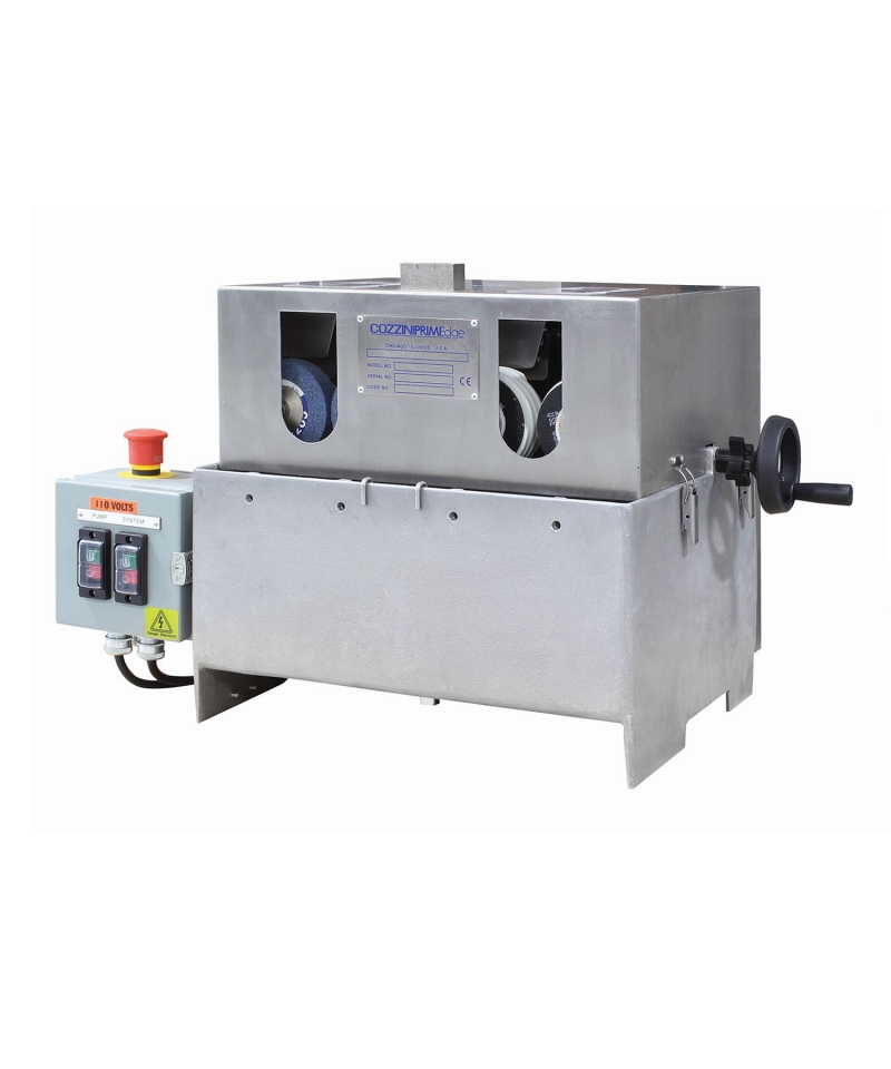 Ideal für kleine Fleischverarbeitungsbetriebe, Supermärkte, Eisenwarengeschäfte und Messerschärfereien. Die geringe Größe des Schärfgeräts bietet die gleichen Vorteile wie die größeren PRIMEdge-Schärfsysteme, die separate Schärf-, Schleif- und Poliergeräte verwenden. Die Schärfsteine mit einem Durchmesser von 102 mm schleifen beide Seiten der Klinge gleichzeitig.