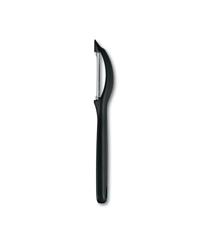 Ein unentbehrliches Werkzeug, das in jeder Küche, ob gewerblich oder privat, zum Schälen von Obst und Gemüse benötigt wird. Schäler mit beweglicher Klinge und gezackter Schneide. Er eignet sich für Obst und Gemüse mit weicher und harter Schale. Griff aus Polypropylen-Kunststoff, Klinge aus rostfreiem Stahl.