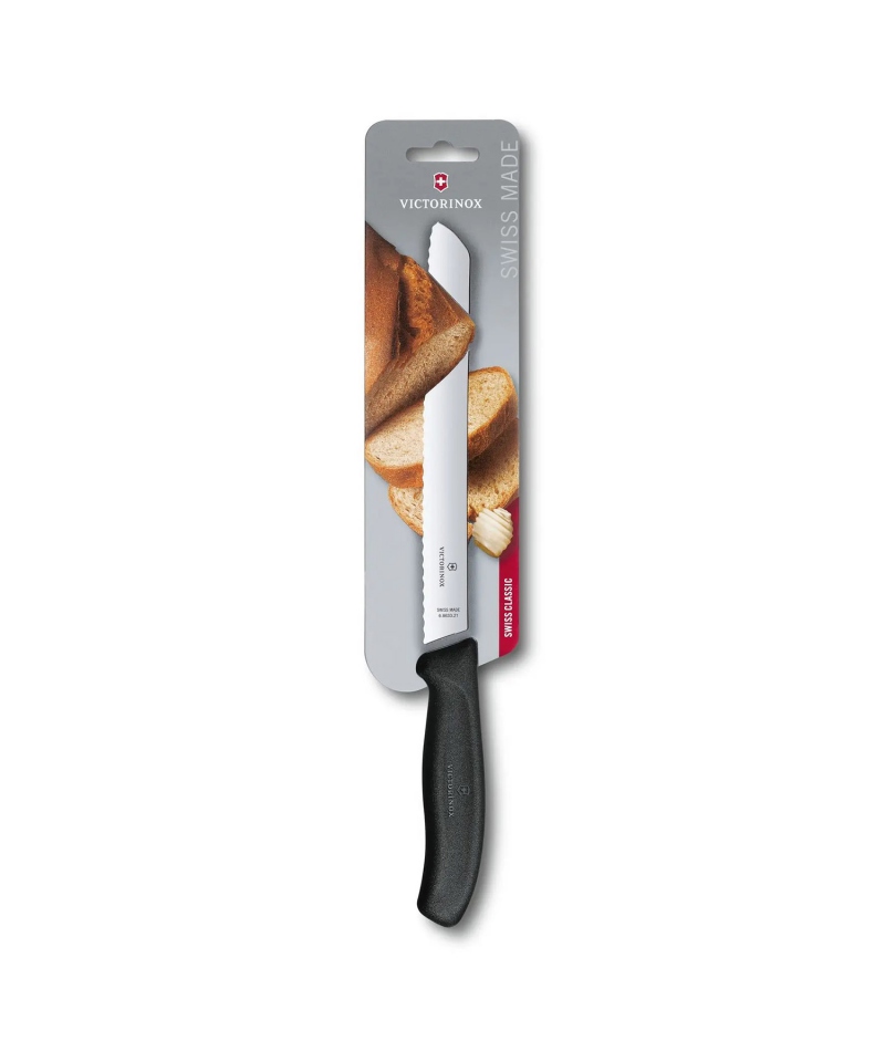 Messer mit Wellenschliff und ergonomischem Griff, entwickelt zum Schneiden von Brot mit knuspriger Kruste, Baguette und Brötchen. Der Wellenschliff der Klinge und der ergonomische Griff garantieren präzises Schneiden und Leichtigkeit.