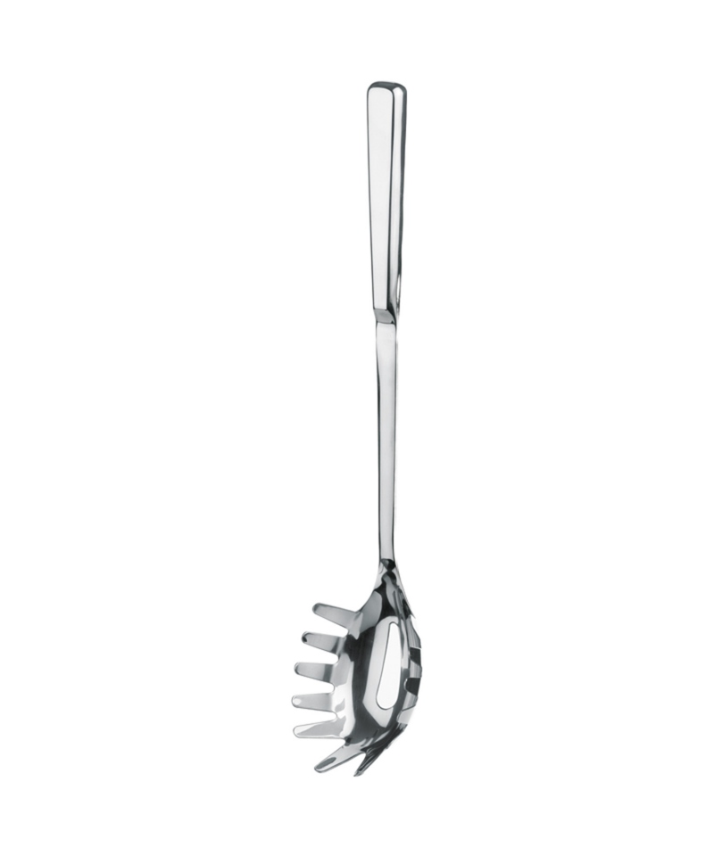 Der Spaghetti-Servierlöffel CLASSIC" ist ein unverzichtbares Küchenutensil für Liebhaber dieser italienischen Pasta. Der Löffel ist aus robustem Edelstahl gefertigt und mit einer auffälligen Hochglanzoberfläche versehen, die ihm ein elegantes Aussehen verleiht. Sein ergonomisch geformter Griff bietet einen bequemen und sicheren Halt beim Servieren von Spaghetti.