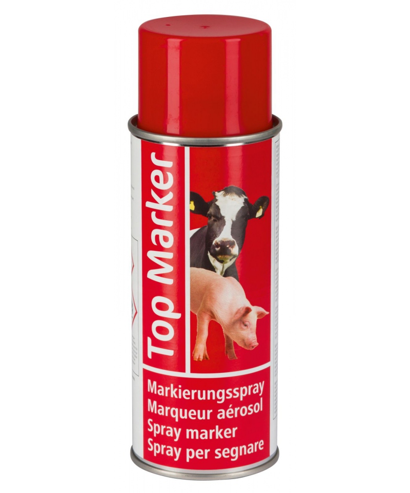 TopMarker Tiermarkierungsspray mit einem Fassungsvermögen von 400 ml ist ein wirksames Mittel zur präzisen Markierung von Rindern, Ziegen und Schweinen. Der direkte Kontakt mit der Haut des Tieres wird vermieden, wodurch die Übertragung von Parasiten und Mikroorganismen zwischen den Tieren verhindert wird. Das Spray trocknet schnell, so dass das Tier sofort markiert werden kann. Es sorgt für eine intensive Farbe und eine dauerhafte Markierung, die lange Zeit sichtbar ist.