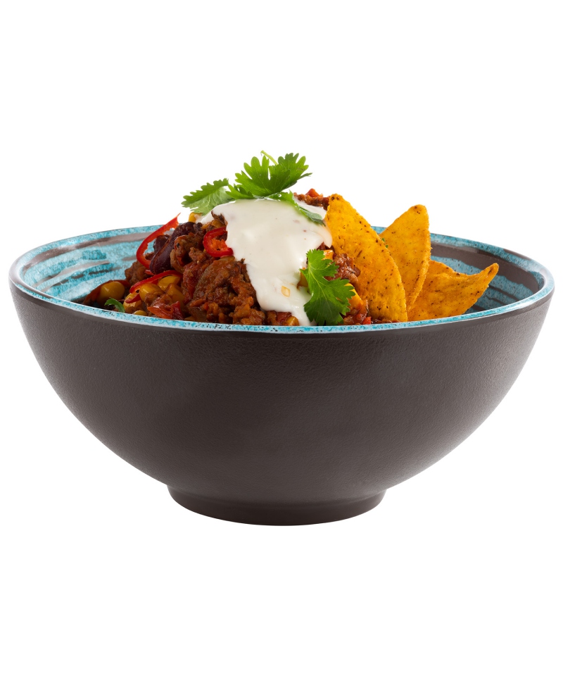 Die Schale aus Melamin ist extrem leicht und dennoch robust, was ihre Langlebigkeit und Zuverlässigkeit garantiert. Das Material ist leicht zu reinigen, was die Verwendung der Schüssel bequem und hygienisch macht. Seine blau-braune Farbe verleiht ihm einen einzigartigen Charme und einen stilvollen Charakter. Ob zu Hause, im Restaurant oder auf einer eleganten Party, die Schale passt perfekt zu verschiedenen Tischarrangements, verleiht Eleganz und schafft eine angenehme Atmosphäre.
