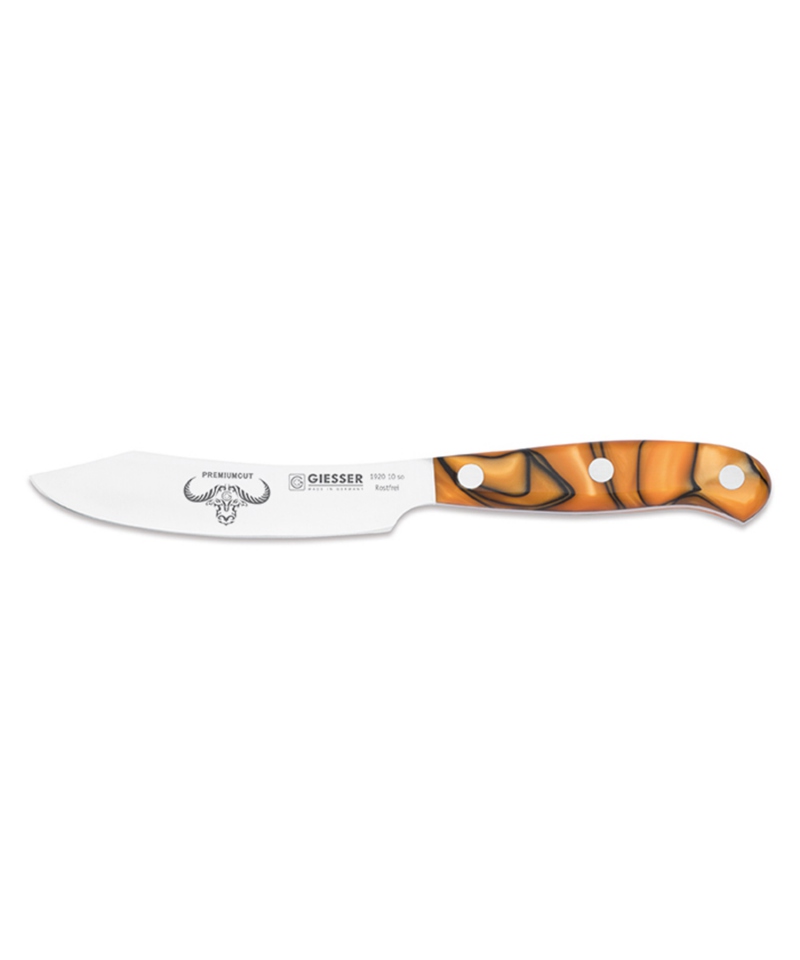PremiumCut Office No. 1 Spicy Orange ist ein einzigartiges Küchenmesser, das Sie durch seine Exklusivität und Exzellenz in jedem Detail verzaubern wird. Der aus hochwertigem Acryl gefertigte Griff ist ein echtes Unikat. Jedes Stück ist ein Unikat und die Form ist genau auf den Benutzer zugeschnitten. So liegt das Messer perfekt in der Hand und gewährleistet ein sicheres und präzises Schneiden. Um lange Freude an diesem besonderen und wertvollen Messer zu haben, empfiehlt es sich, es von Hand zu waschen und sicher zu lagern (außerhalb der Reichweite von Kindern). Das PremiumCut 10 cm ist ein kleines Multitasking-Messer, das sich für eine Vielzahl von Küchenarbeiten eignet.