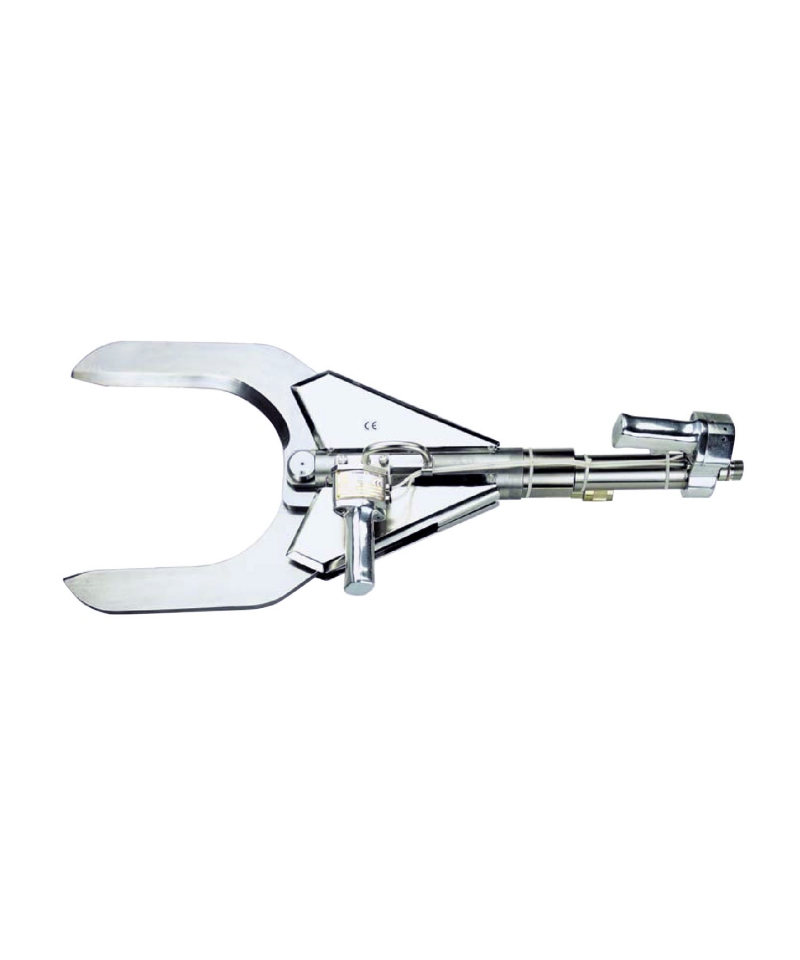 Die Schere hat ein Gewicht von 24 kg und ist leicht zu handhaben. Der Schalldruckpegel liegt gemäß EN ISO 11688-1 unter 85 dB(A) und bietet somit einen ausreichenden Gehörschutz für den Bediener. Dies ermöglicht den Einsatz des Geräts in Bereichen, in denen Lärmbeschränkungen herrschen. Die Schubkraft des Geräts beträgt 26,5 kN, was ein effizientes und schnelles Zerteilen von Fleisch garantiert. Die Schere arbeitet mit einem Betriebsdruck von 200 bar und bietet damit ausreichend Druck und Kraft.