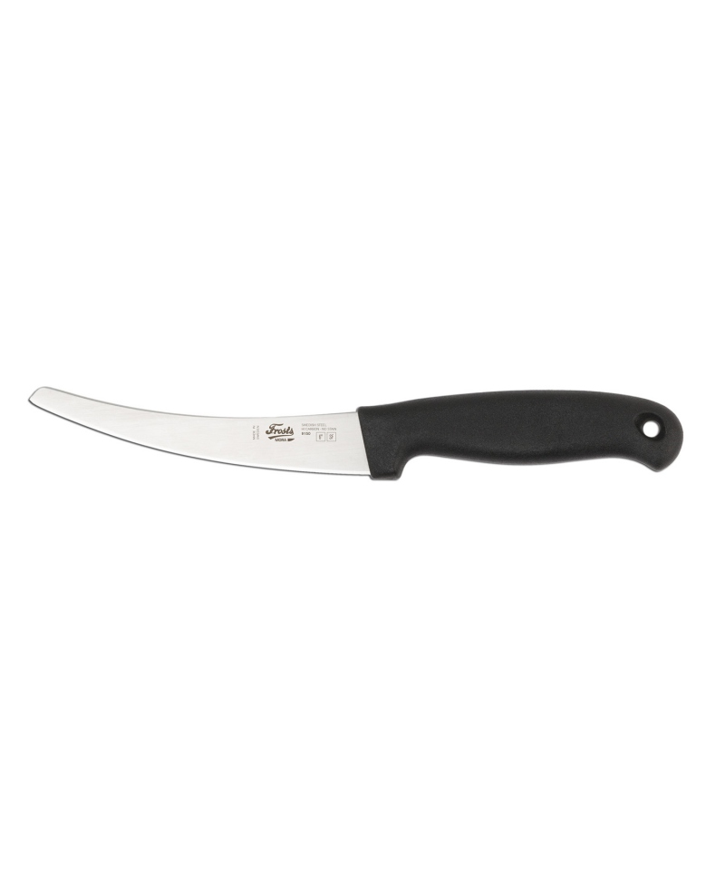 Ein gebogenes Messer mit einer Klingenlänge von 15 cm und hoher Klingenflexibilität.