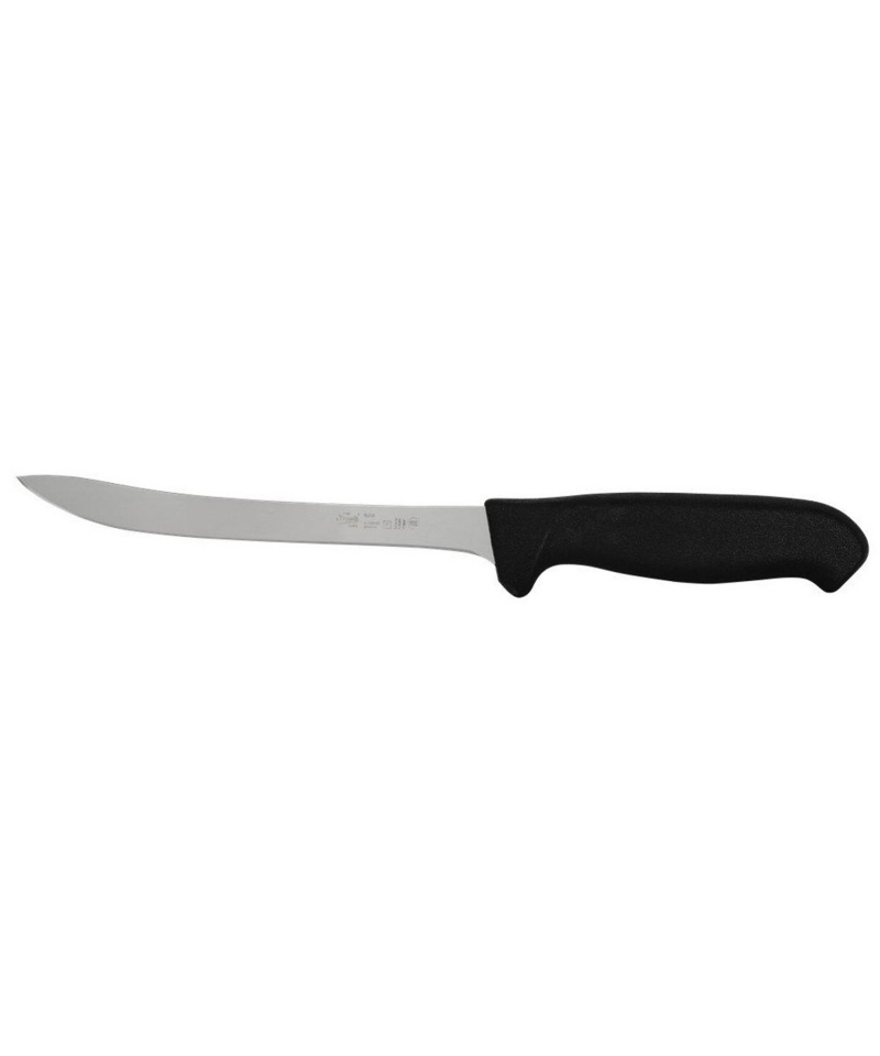 Filetiermesser mit einer breiteren Spitze. Die Klingenlänge beträgt 178 mm und ist aus rostfreiem Stahl gefertigt.