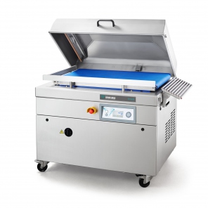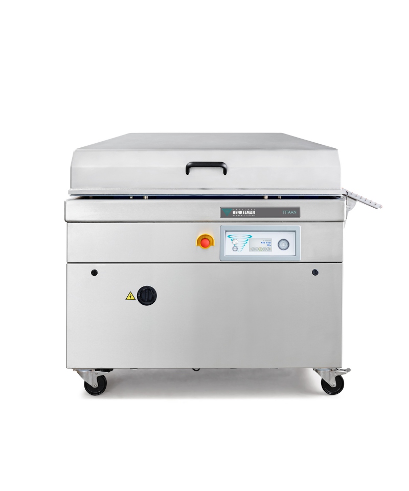 Die Vakuumverpackungsmaschine Titaan 110 ist eine fortschrittliche und vollautomatische Lebensmittelverpackungsmaschine. Ausgestattet mit einer leistungsstarken 160 m3/h-Pumpe, ermöglicht sie ein schnelles und effizientes Entfernen der Luft aus der Verpackung in einer Zykluszeit von 15 bis 45 Sekunden.