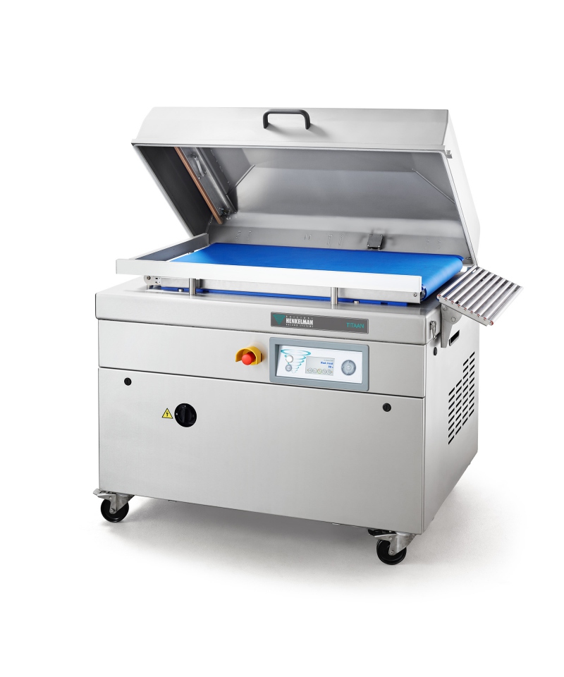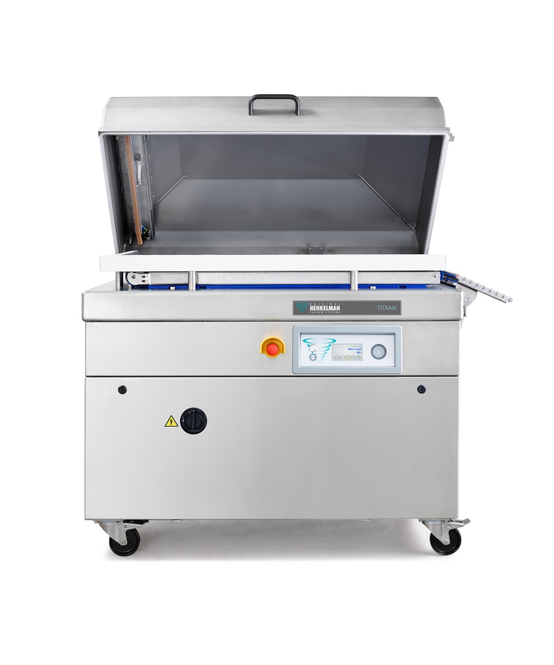 Eine von zwei vollautomatischen Titaan-Verpackungsmaschinen, die sich ideal für große Unternehmen eignen, die eine zuverlässige Vakuumverpackungsmaschine benötigen.