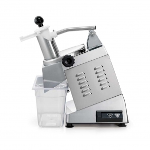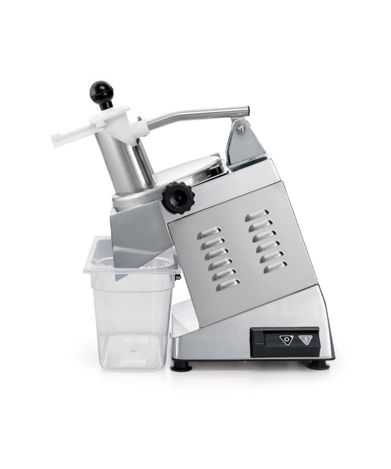 Einzigartig ist das exklusive Zuführsystem, mit dem sich auch weiche Produkte wie Mozzarella leicht verarbeiten lassen. Darüber hinaus sorgen drei Mikroschalter für die Sicherheit bei der Verwendung der Schneidemaschine und bieten Schutz. Das Gerät ist in einer Vielzahl von Optionen erhältlich, darunter ein Deckel aus Edelstahl, der sich bequem in der Spülmaschine reinigen lässt.
