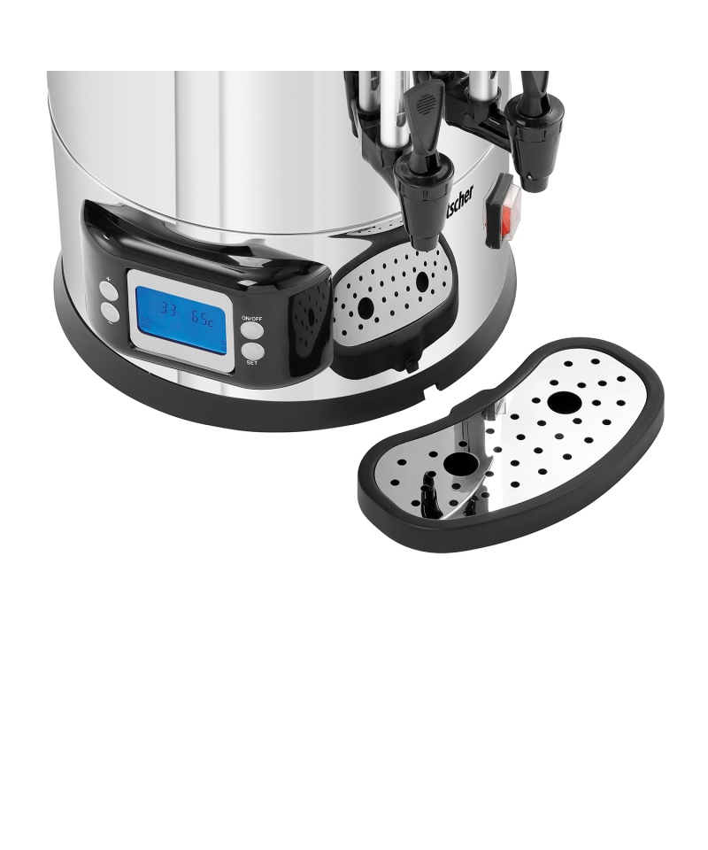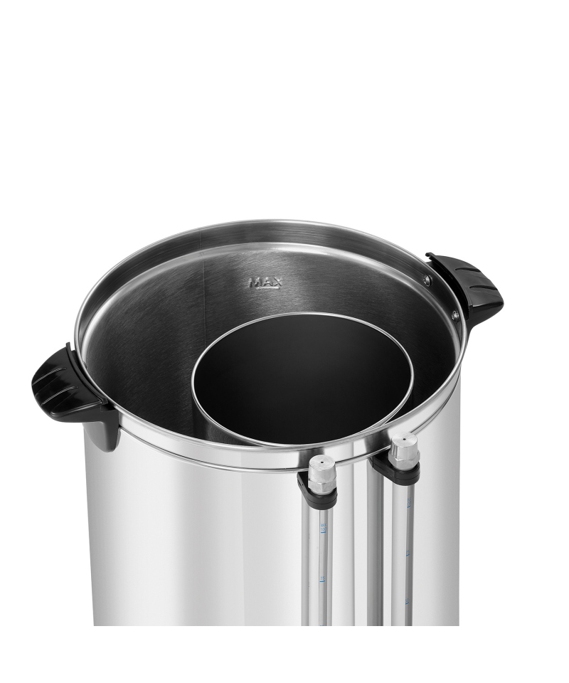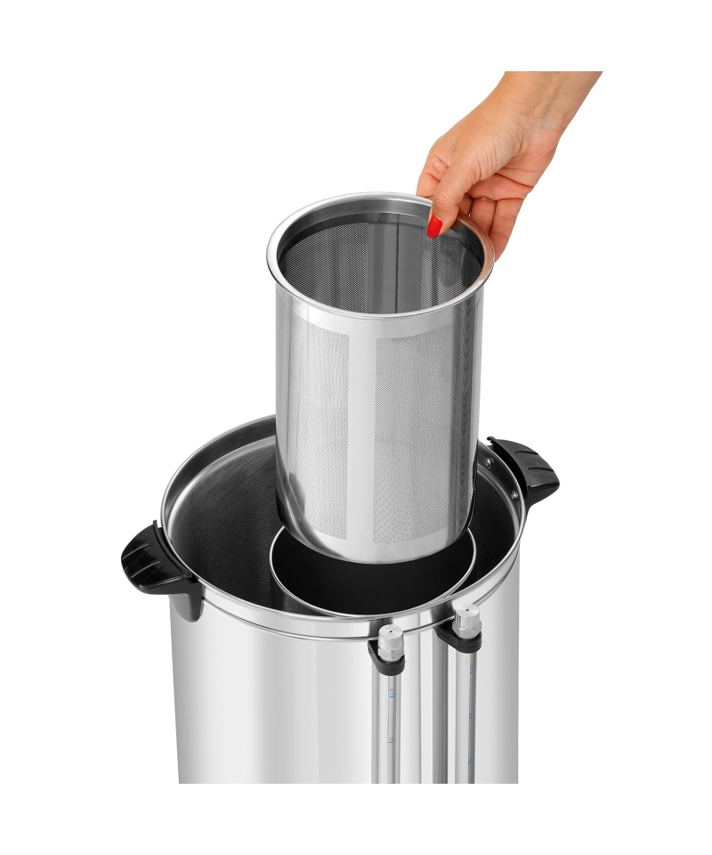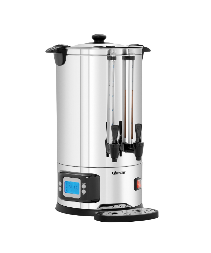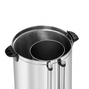 Dieser stilvolle Wasserkocher von HENDI mit 16 Litern Fassungsvermögen vereint elegantes Design mit hoher Funktionalität. Perfekt für alle, die heiße Getränke lieben – ob Tee, Kaffee oder Glühwein – er hält sie zuverlässig auf optimaler Serviertemperatur, ganz ohne ständiges Nachheizen. Dank des eleganten Looks im Stil von „Design by Bronwasser“ passt er ideal in jede Küche, Café oder Getränkestation. Einfach, zuverlässig und bereit, wenn du ihn brauchst.