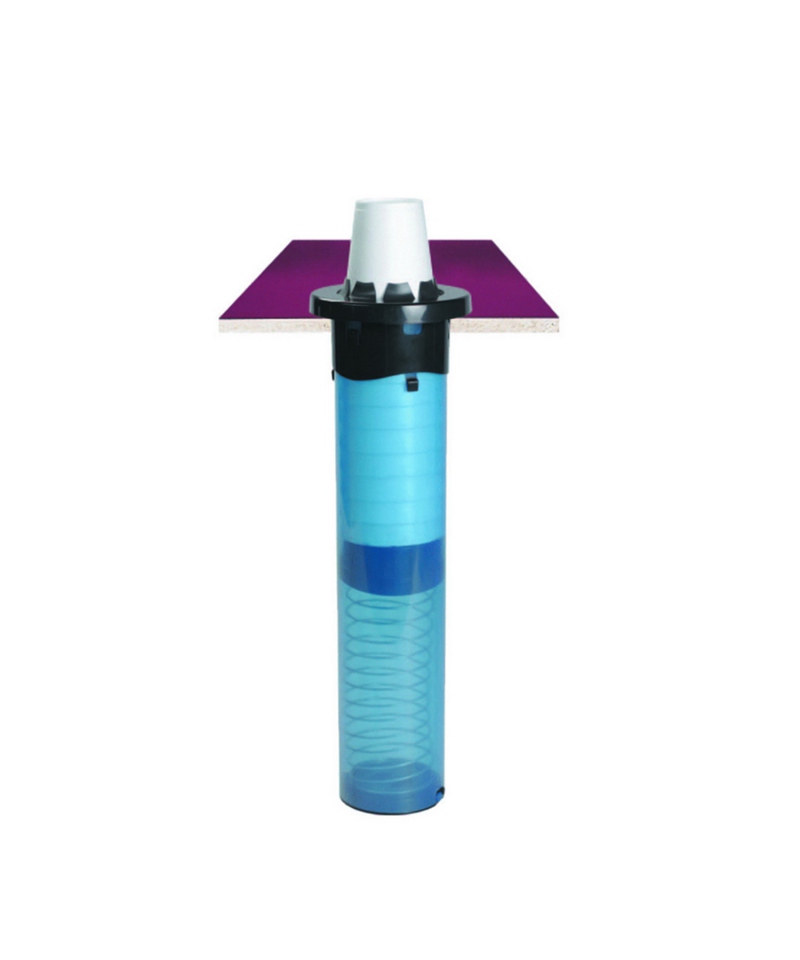 Der sichtbare Flansch von Ø 155 x 20 mm ist nicht nur von praktischer Bedeutung, sondern sorgt auch für ein elegantes Element. Die Abmessungen der Lichtinstallation betragen 437 mm und der erforderliche Ausschnitt hat einen Durchmesser von 124 mm. Der BD143 ist die perfekte Lösung für die bequeme und hygienische Ausgabe von Bechern an verschiedenen Orten wie Cafés, Dienstleistungsbetrieben und Büros.