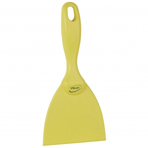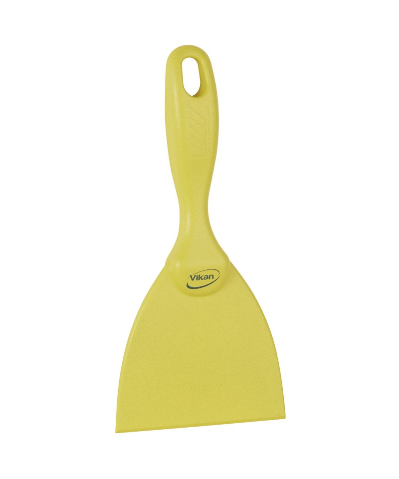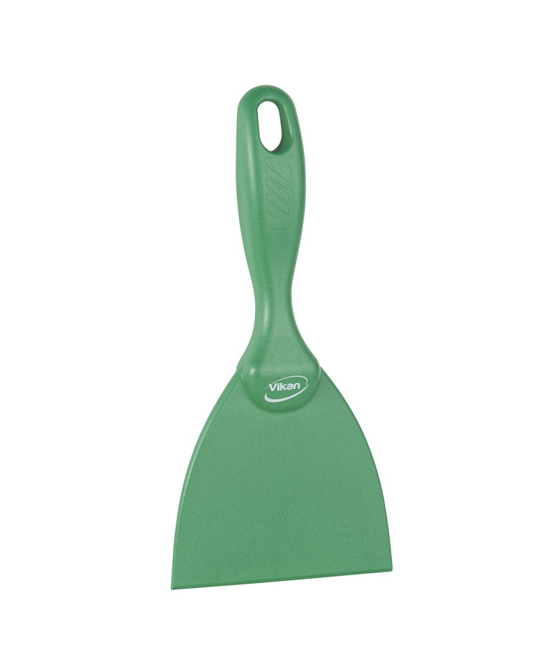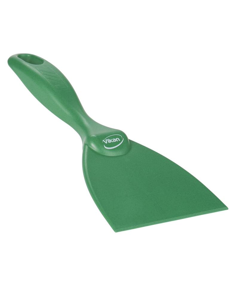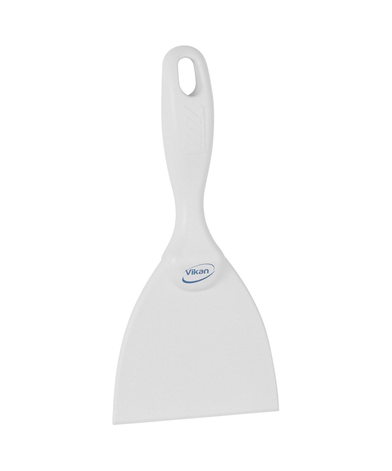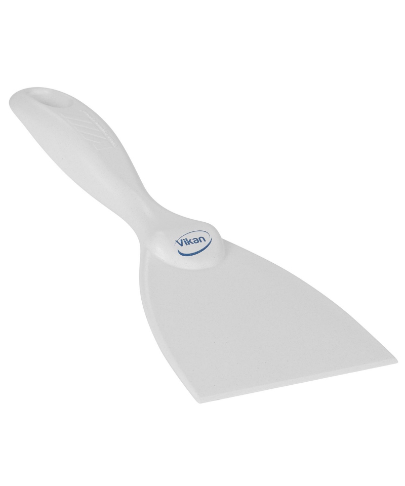 Dieser 102 mm breite Schaber ist für die Reinigung kleiner Räume und runder Geräte wie z. B. großer Schüsseln gedacht. Er eignet sich perfekt zum Lösen von hartnäckigem Schmutz, einschließlich Kuchen, Schokolade und angebrannten Lebensmitteln. Die beidseitig geschliffene Klinge sorgt für eine lange Lebensdauer. Der Schaber besteht aus einem mit einem Metalldetektor aufspürbaren Material, das mit dem Vikan-Testkit, Produktnummer 11113, vor dem Gebrauch getestet werden kann.
