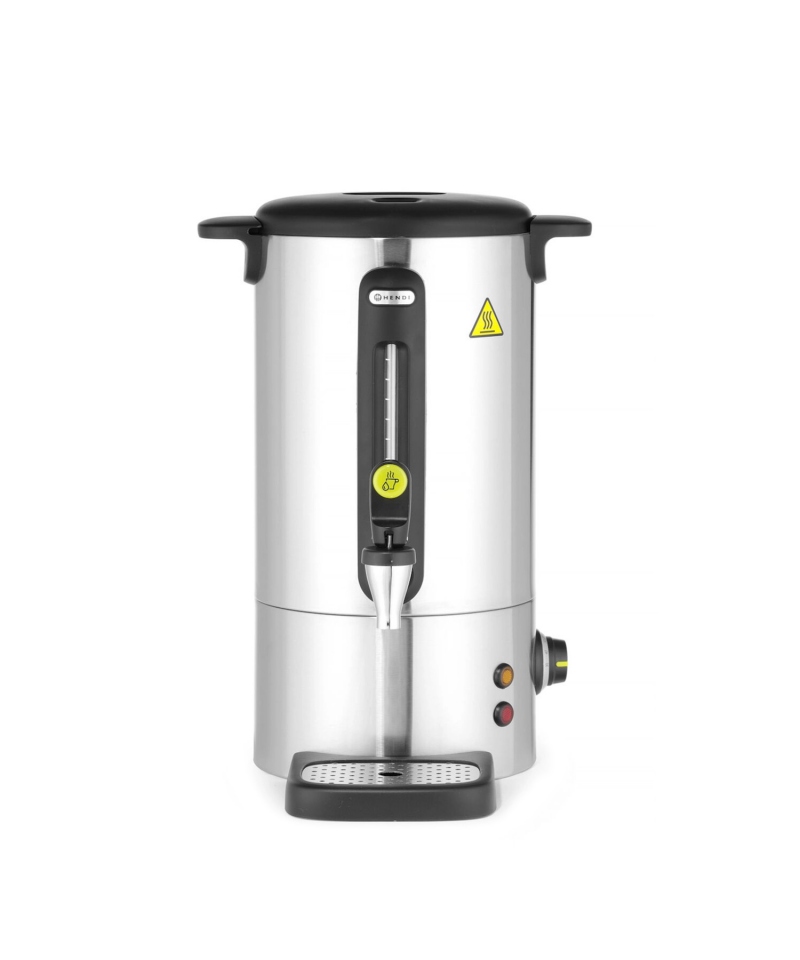 Der Wasserkocher "Design by Bronwasser" von HENDI mit einem Fassungsvermögen von 9 Litern ist ein zuverlässiges Gerät für Liebhaber von Heißgetränken. Er hält Ihre Lieblingsgetränke nach dem Aufheizen lange warm. Ob Tee oder Kaffee, der Brüher hält sie auf der perfekten Serviertemperatur.