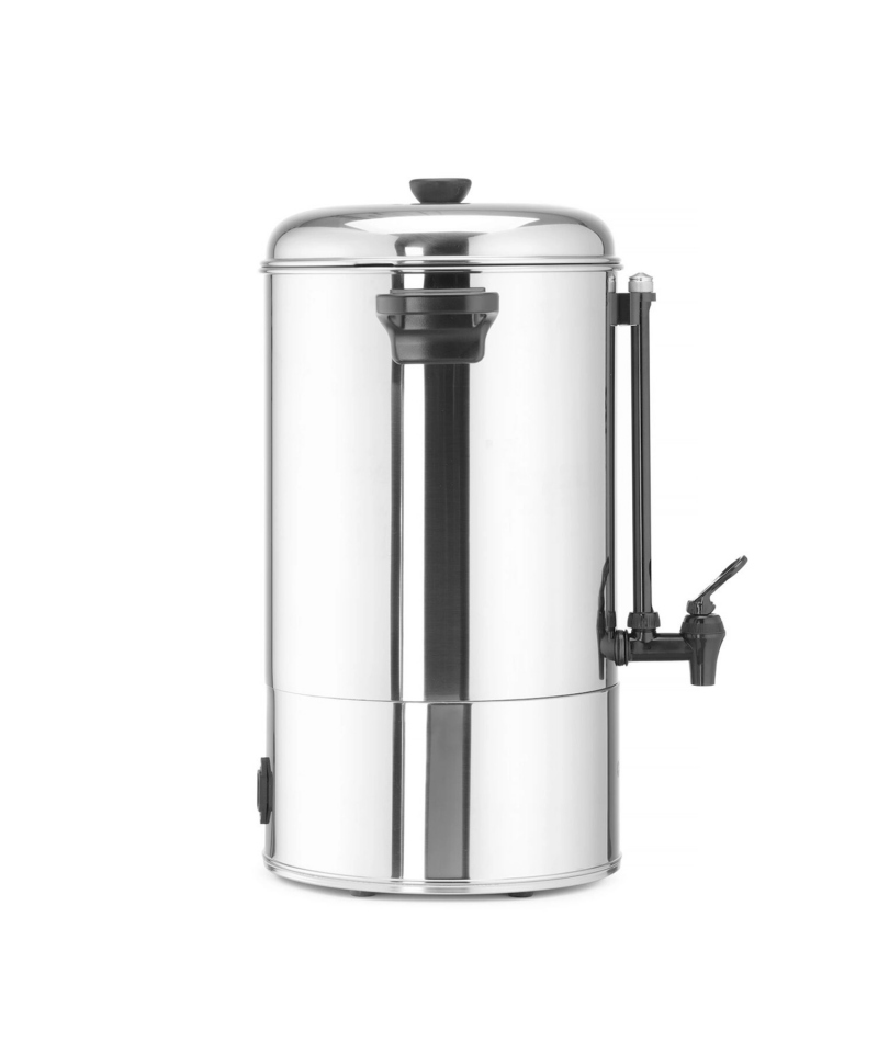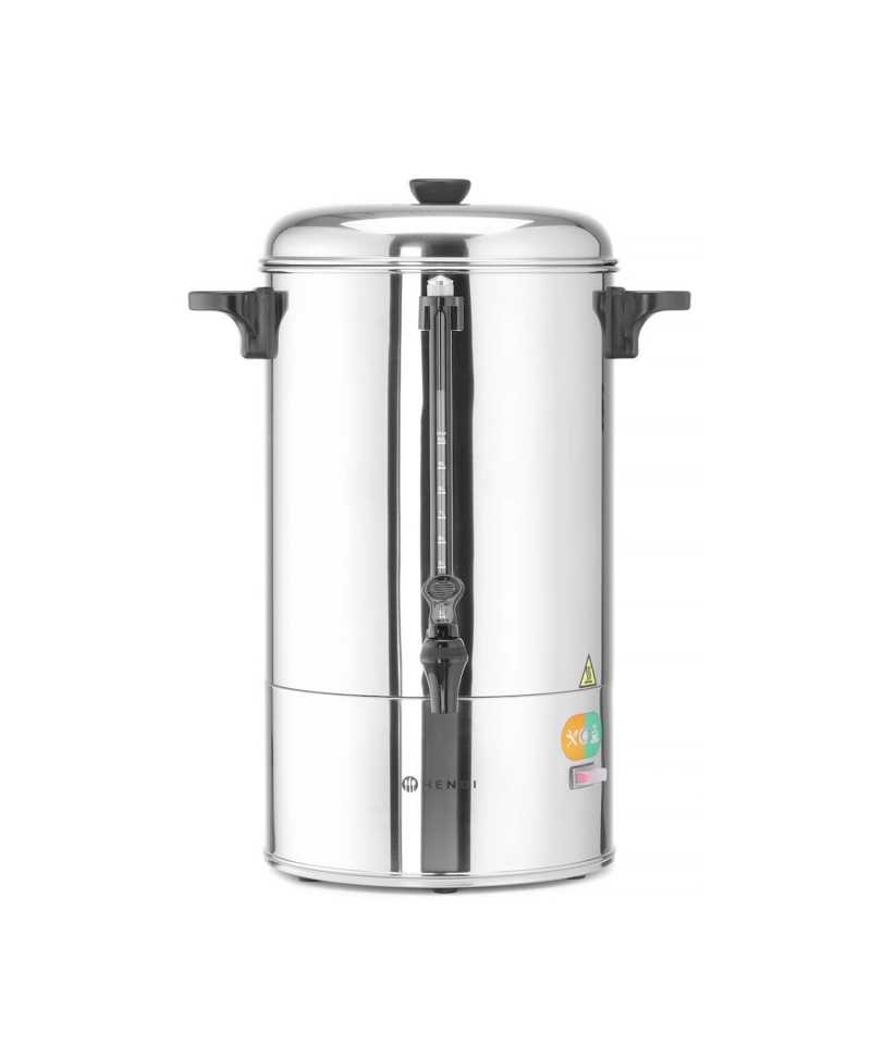 Der Kaffeezubereiter mit einwandiger Konstruktion von HENDI verfügt über eine gut lesbare Wasserstandsanzeige, einen tropffreien Auslaufhahn sowie eine Kontrollleuchte, die anzeigt, wann der Kaffee fertig ist und wann eine Entkalkung notwendig wird. Mit einem Fassungsvermögen von 10 Litern lassen sich viele Gäste problemlos bedienen – ohne ständiges Nachfüllen.