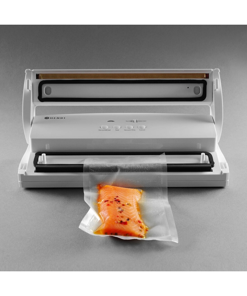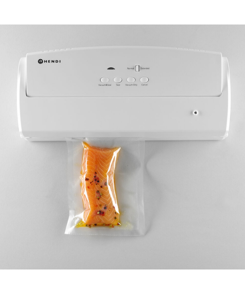Das kammerlose Vakuumiergerät von Hendi ist ein leistungsstarkes Gerät für die Lebensmittelkonservierung in Haushalts- und Profiküchen. Das Gehäuse aus Edelstahl AISI 304 steht für Langlebigkeit und Hygiene, das moderne Design passt sich jeder Umgebung an. Eine präzise Dichtung am Deckel sorgt für einen luftdichten Verschluss und schützt die Lebensmittel vor Aromaverlust.