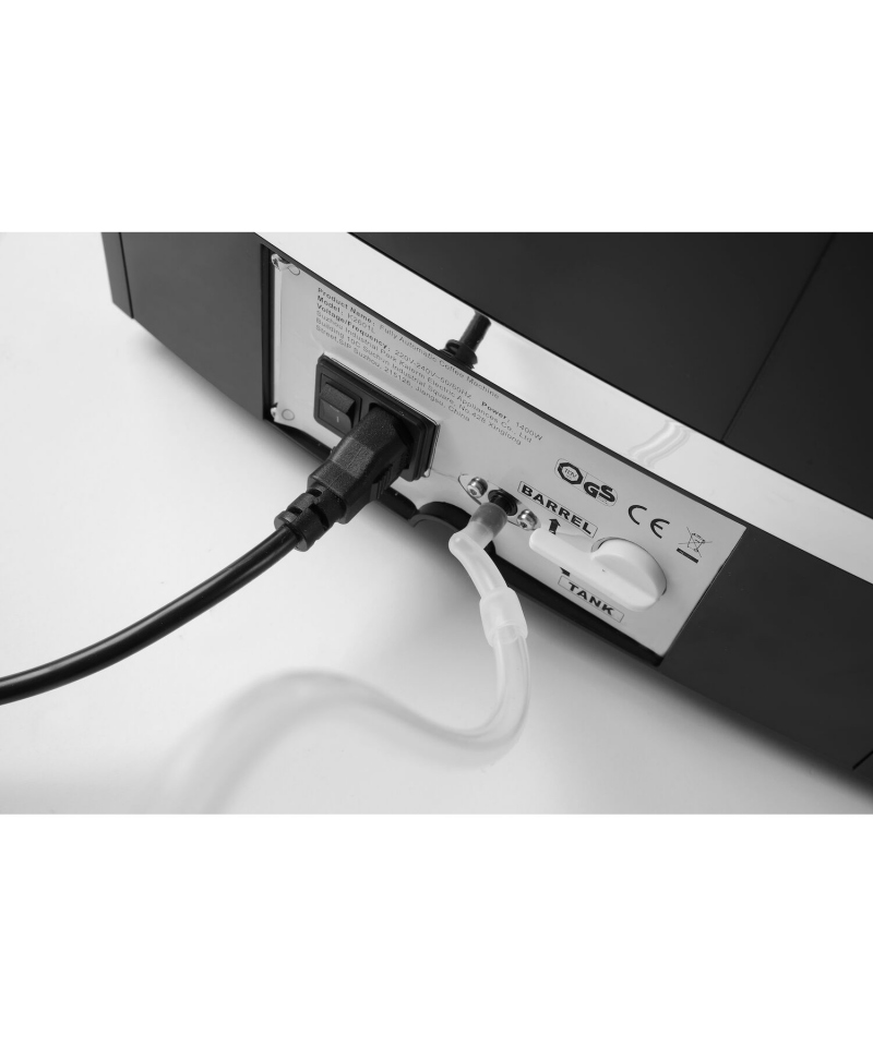 Die höhenverstellbare Ausgabedüse (100–160 mm) eignet sich für verschiedene Tassenhöhen. Der Abwasserbehälter mit 1,8 Litern Volumen erleichtert die Reinigung und hält die Arbeitsfläche sauber.