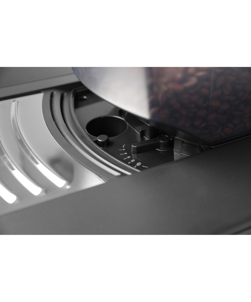Dank des benutzerfreundlichen Touchscreens mit übersichtlichem Display ist die Bedienung des Kaffeevollautomaten besonders einfach. Der Automat bereitet eine große Auswahl an Getränken zu: Espresso, Lungo, Cappuccino, Latte, heiße Milch, Milchschaum und heißes Wasser. Ein integriertes Edelstahlmahlwerk mit einstellbarem Mahlgrad sorgt stets für frischen, aromatischen Kaffeegenuss. Stärke (7–14 g) und Füllmenge (15–240 ml) lassen sich individuell anpassen.