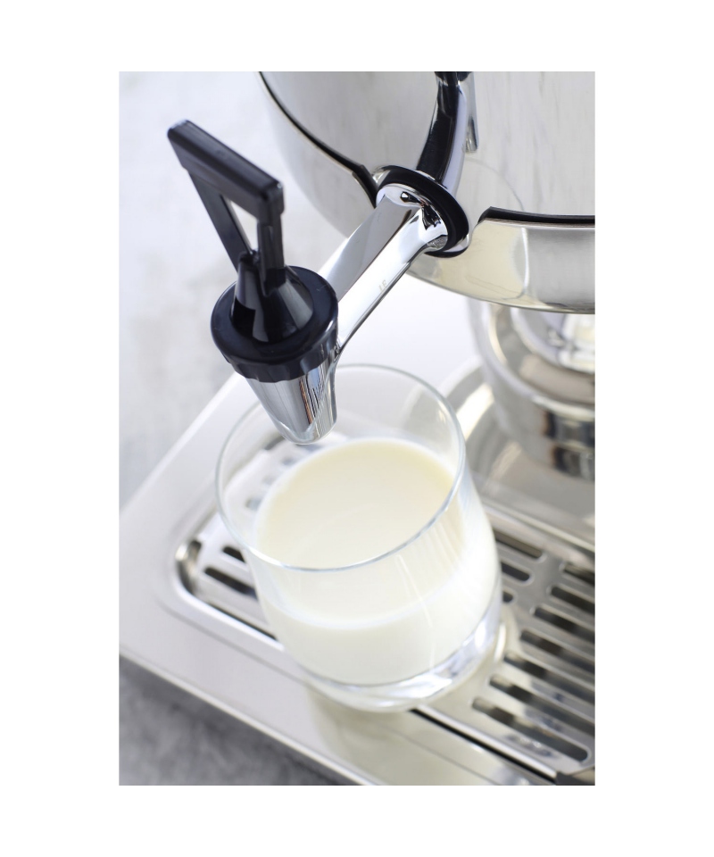 Dank des integrierten Kühlzylinders aus Edelstahl bleiben Milch oder Saft optimal gekühlt und frisch. Der entnehmbare Behälter mit tropffreiem Zapfhahn ermöglicht ein sauberes und präzises Ausgießen.