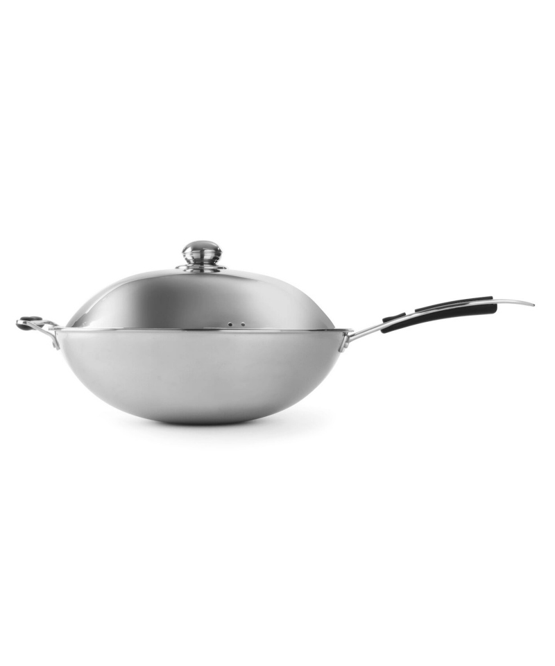 Die Profi Line Induktions-Wokpfanne ist nicht nur ein elegantes Küchenaccessoire, sondern vor allem ein funktionelles Werkzeug für jeden Kochbegeisterten. Gefertigt aus drei Schichten Edelstahl, sorgt sie für Robustheit und gleichmäßige Wärmeabgabe.