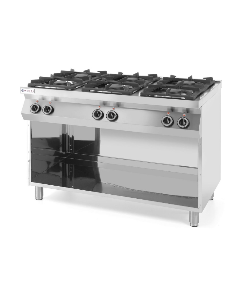Gasherd mit 6 Brennern auf offenem Unterbau, HENDI – Kitchen Line