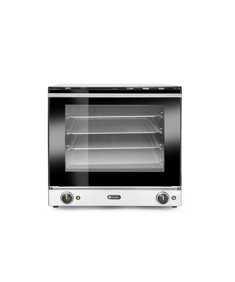 Ausgestattet mit zwei leistungsstarken Lüftern garantiert der Hendi Heißluftofen eine gleichmäßige Wärmeverteilung im gesamten Garraum – für perfekte Backergebnisse bei kürzeren Garzeiten. Ideal geeignet für Tartes, Aufläufe, Gebäck oder Brot. Die Tür mit doppelter Verglasung bleibt kühl und lässt sich zur Reinigung leicht abnehmen.