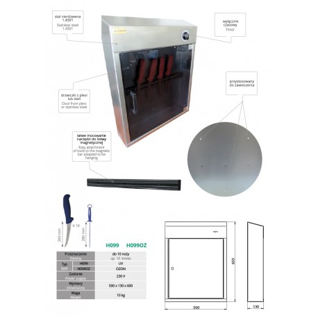 UV-Sterilisator für Messer, mit Magnetstreifen, Stahltür, WH099DSTAL