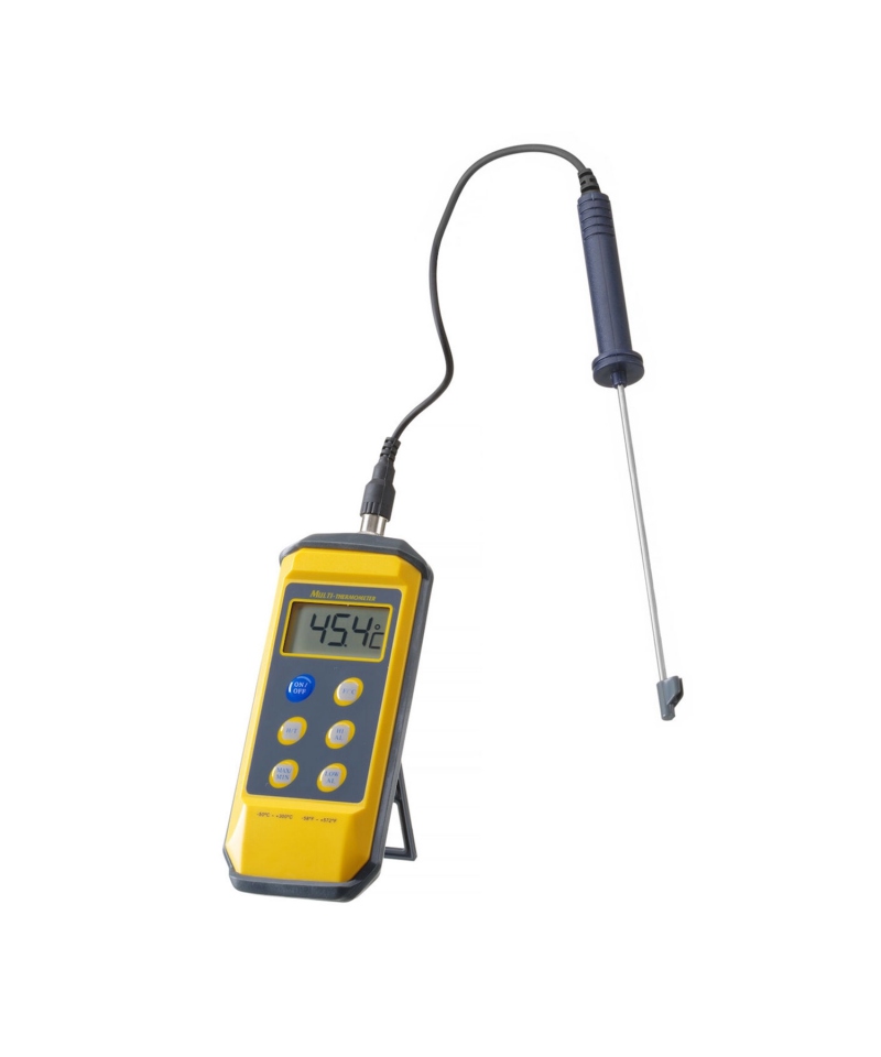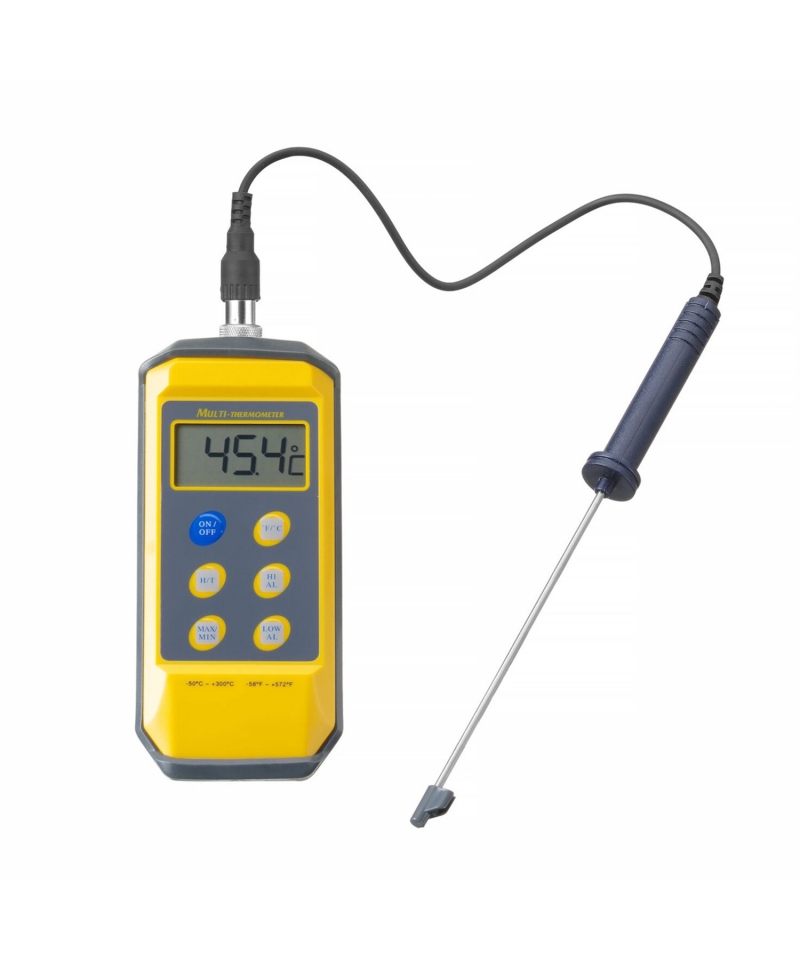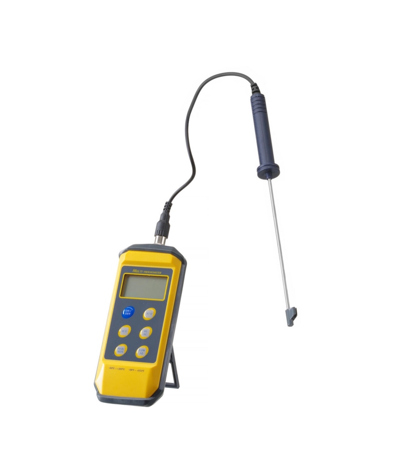 Zusätzliche Funktionen wie der "Lock-Modus" zur kontinuierlichen Temperaturüberwachung und eine Max/Min-Temperaturfunktion zur einfachen Verfolgung von Extremwerten erhöhen die Benutzerfreundlichkeit dieses Geräts. Der abnehmbare Edelstahlfühler mit einer Länge von 164 +/-3 mm ermöglicht präzise und sichere Messungen auch in tieferen Behältern oder Schalen.