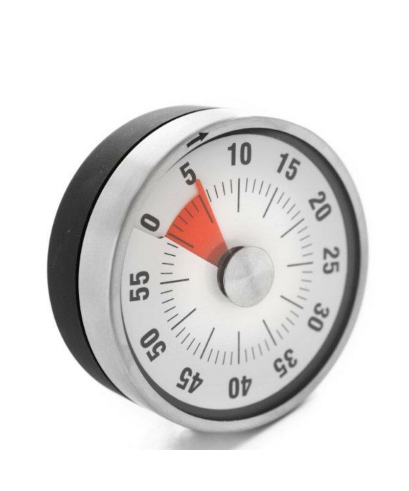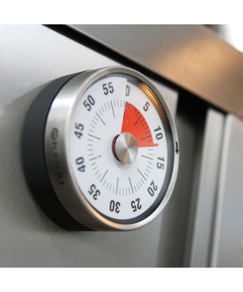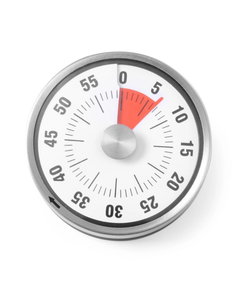 Eine rote Linie auf dem Ziffernblatt zeigt die verstrichene Zeit an, so dass Sie die verbleibende Zeit schnell ablesen können. Das Ziffernblatt ist auch aus der Ferne gut sichtbar, so dass der Timer auch in belebten Küchen leicht zu bedienen ist.