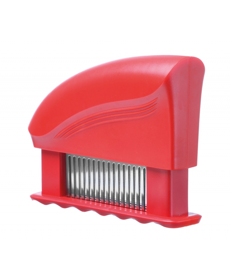 Der HENDI-Fleischklopfer ist ein modernes Gerät, das die effektivste Technologie zur Verfeinerung, Zartmachung und Verbesserung der Qualität und des Geschmacks von Fleisch einsetzt. Durch die Kombination eines tiefen Einschnitts in die Fleischfasern mit einem sanften Aufbrechen liefert das Gerät hervorragende Ergebnisse. Sie verkürzt die Zeit zum Marinieren, Kochen, Braten und Grillen von zartem Fleisch. Beim Aufschlagen der Klinge werden Gewürze und Saucen tief in das Fleisch eingebracht, was den Geschmack noch verstärkt. Die weichen Federn erleichtern die Arbeit mit dem Rasiermesser und das kulinarische Ergebnis ist besser.