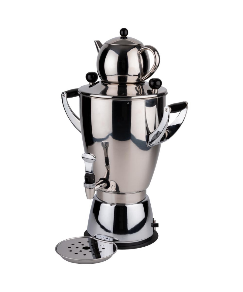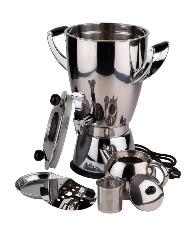 Der Samowar ist mit einer Abtropfschale ausgestattet, die Unreinheiten verhindert und das Servieren von Tee erleichtert. Die Leistung von 1800 W sorgt dafür, dass das Wasser schnell erhitzt wird und auch für größere Gruppen von Gästen in kurzer Zeit einsatzbereit ist.