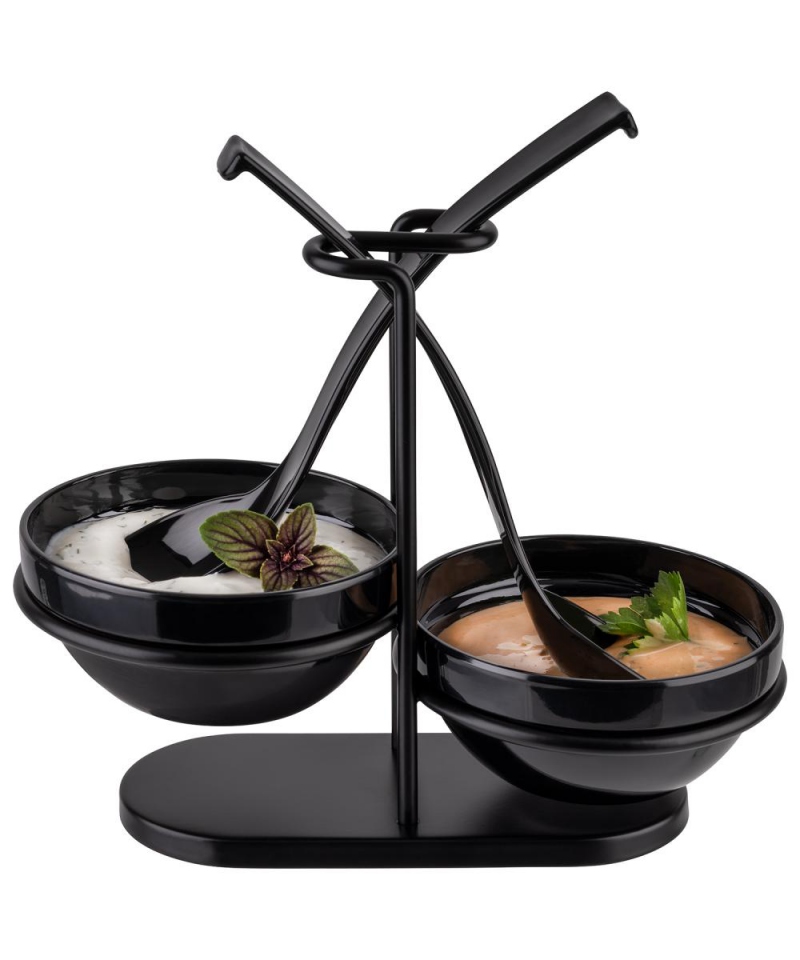 Der Löffelständer für zwei Schüsseln der Marke APS ist die ideale Lösung für alle, die ihre Küche praktisch organisieren und Saucen bequem aus Schüsseln auftragen möchten.